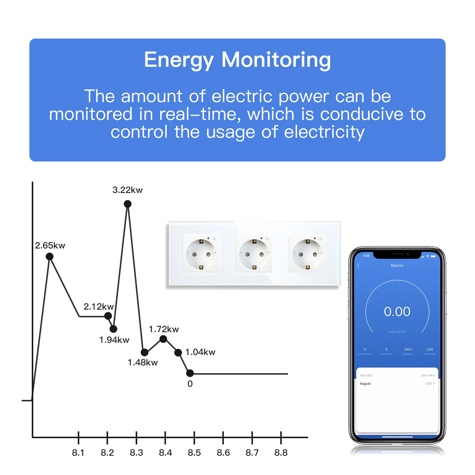 Розетки BSEED для монитора питания, с поддержкой Wi-Fi, 16 А, 100-240 В