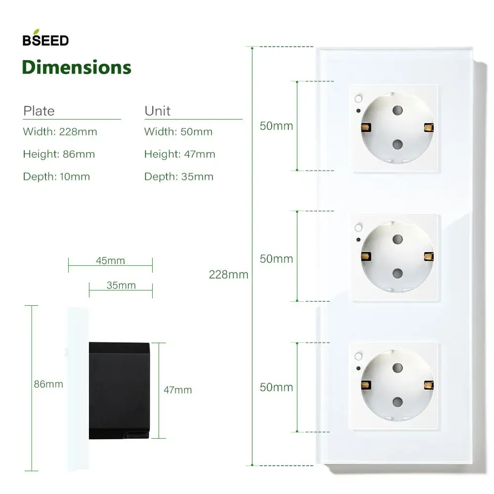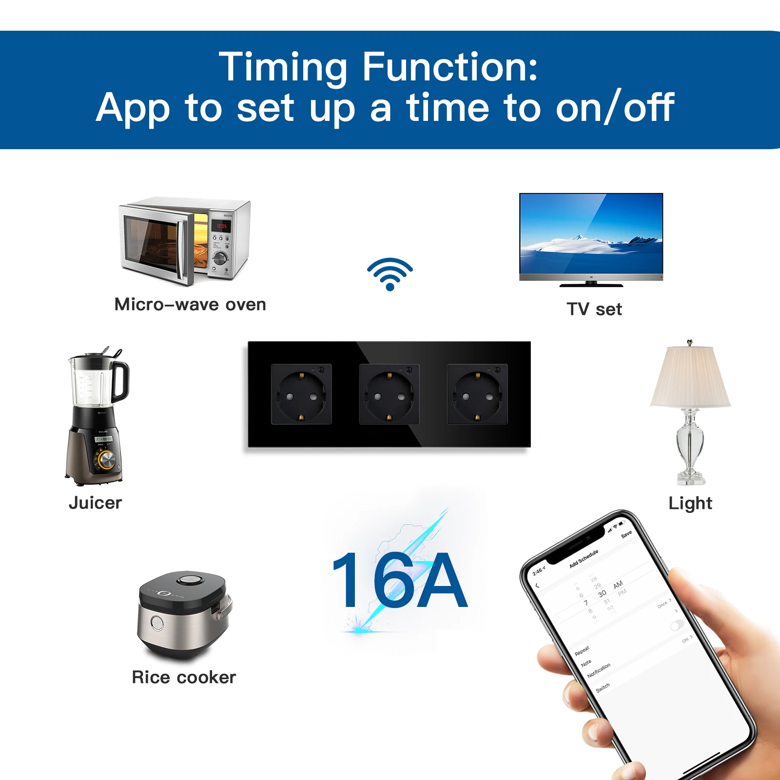 BSEED Wi-Fi настенная розетка стандарта ЕС трехместного 16A 100V-240V белого и черного цвета с золотыми с украшением в виде кристаллов Стекло Панель Поддержка для приложение Tuya