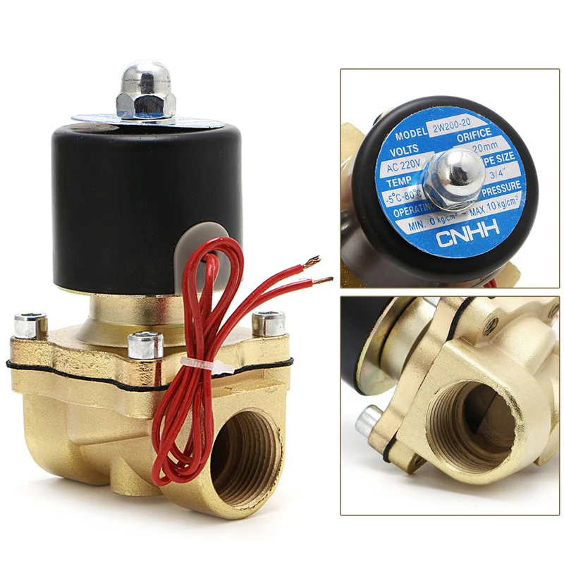 Электрический электромагнитный клапан 34 дюйма, 220 В, пневматический, 2 порта, для воды, масла, воздуха, газа, 2W-200-20