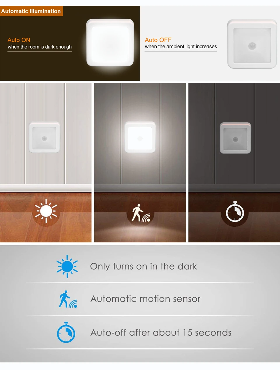 Датчик автоматически определяет день и ночь и будет освещаться только ночью, при обнаружении движения и автоматически выключается через 15-30 секунд, если движения не обнаружено.Интеллектуальное обнаружение датчика движения-датчик света имеет встроенный датчик движения, который обнаруживает движение от 7 до 10 футов.Идеально подходит для любого места-этот свет может использоваться для освещения коридоров, лестниц, ванных комнат, спальни, шкафов, складских помещений и многого другого. Беспроводная работа, работающая от аккумулятора, не мешает установке. Электрик не нужен. Вы можете установить батареи в блок, установить свет там, где он вам нужен, и наслаждаться сохранностью и сохранностью блоков 10 люмен светодиодный свет.