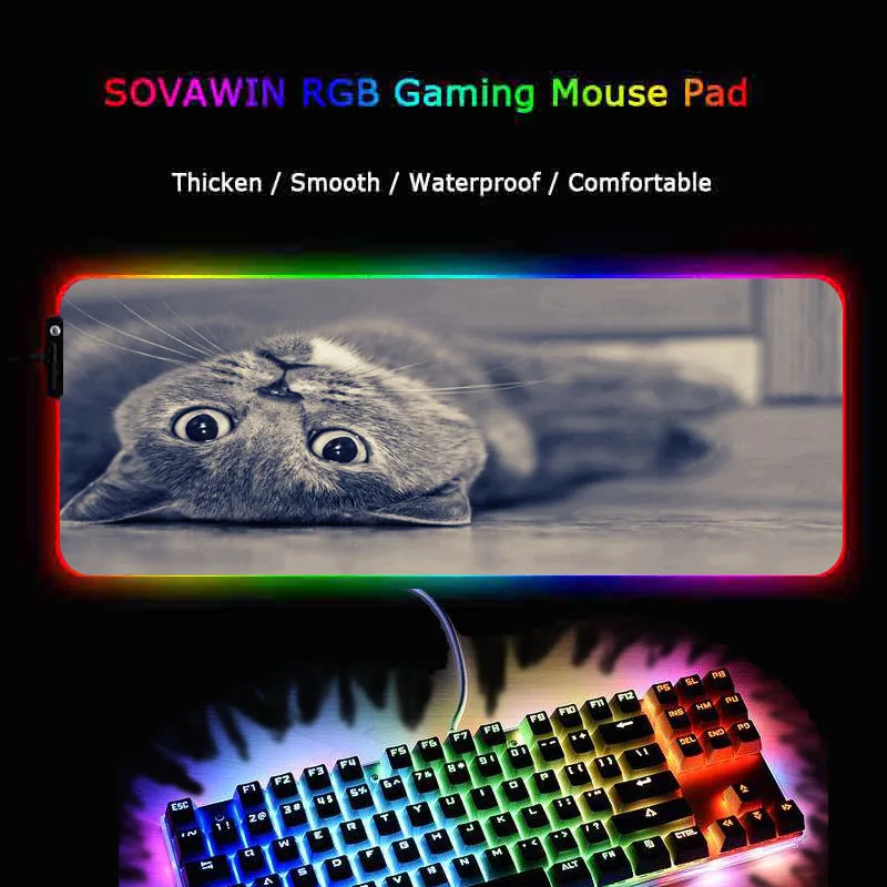 Игровой коврик для мыши с милым котом, большой RGB компьютерный коврик, игровой коврик для клавиатуры, Настольный коврик, игровой коврик для мыши для ПК, Прямая поставка