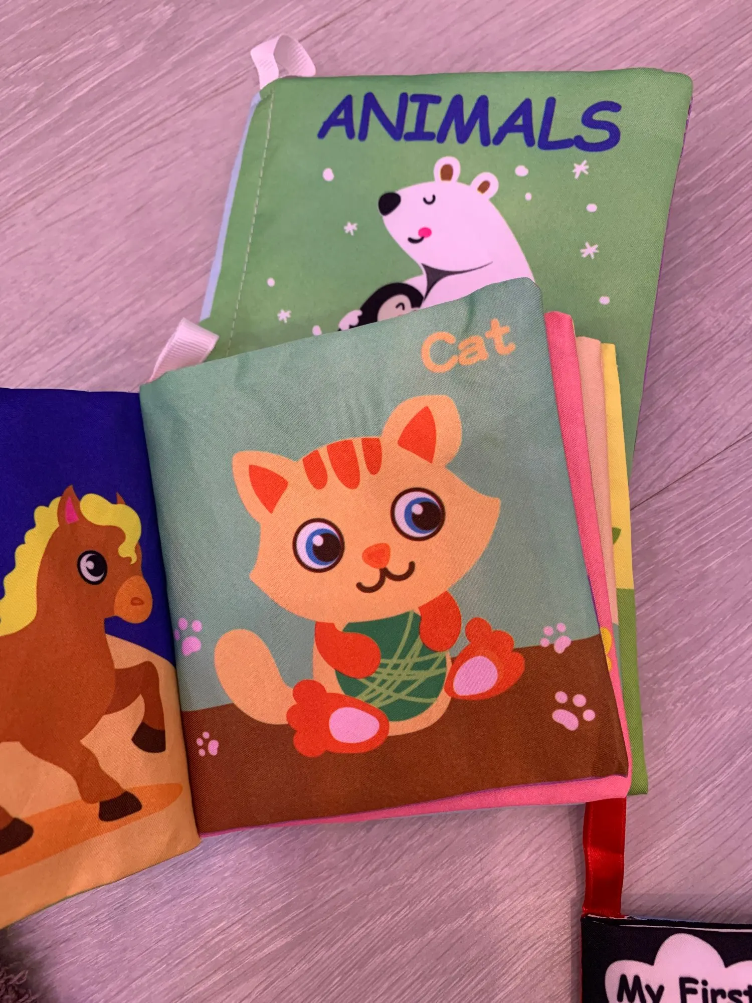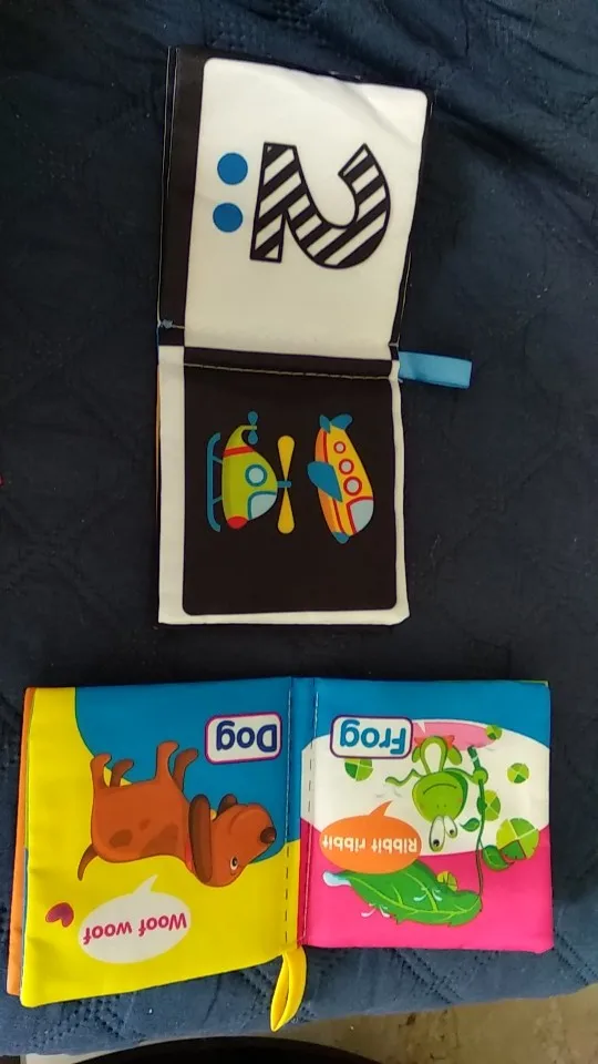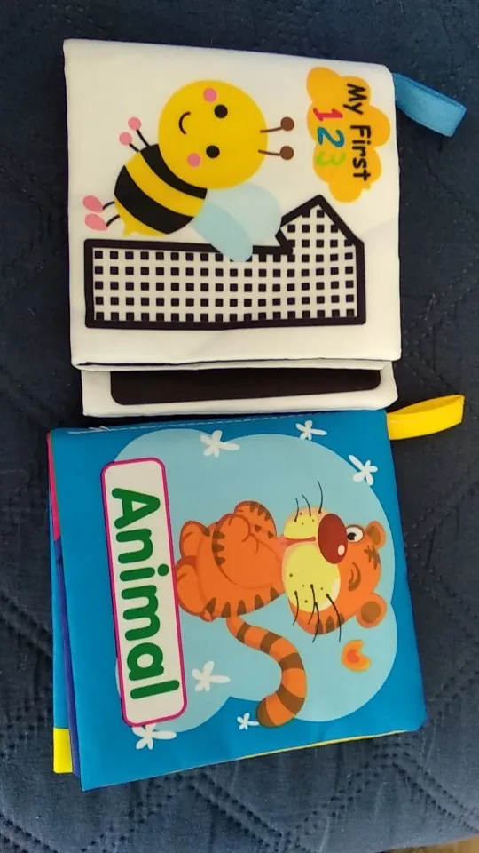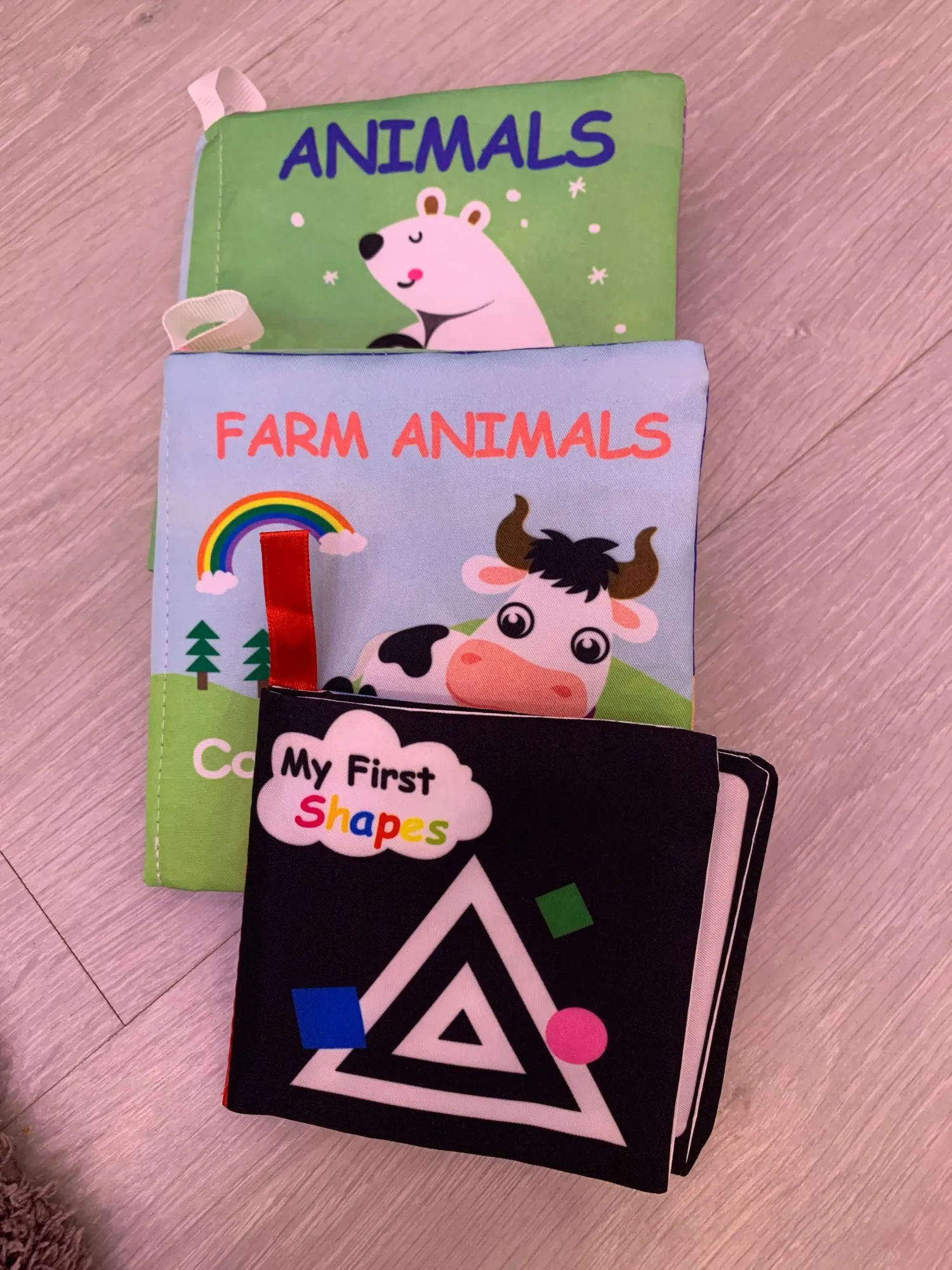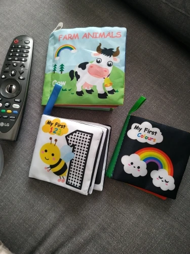 Заказала 6 книжечек сразу. Шли долго, два месяца до Швейцарии, но у меня спешки не было. Качество отличное, маленькие книжечки шуршат, а те, что побольше - еще и с пищалками. Приятные на ощупь, надеюсь, после стирки останутся такими же яркими