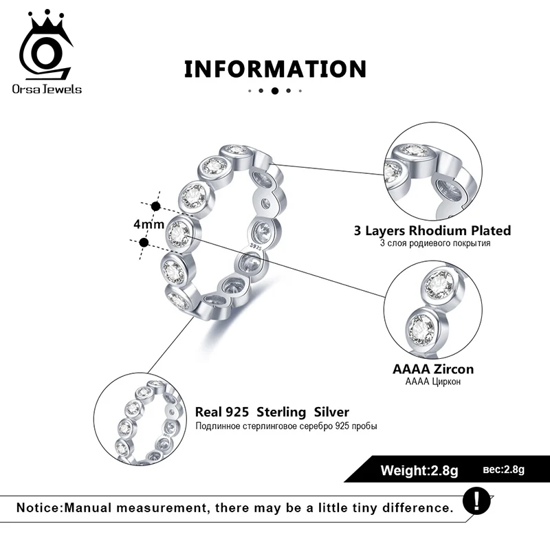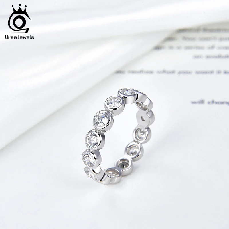 ORSA JEWELS 925 Серебряное женское кольцо на палец с 4 мм 14 штук большой кристаллический камень полностью проложенный 4A CZ обручальные кольца ювелирный подарок OSR225