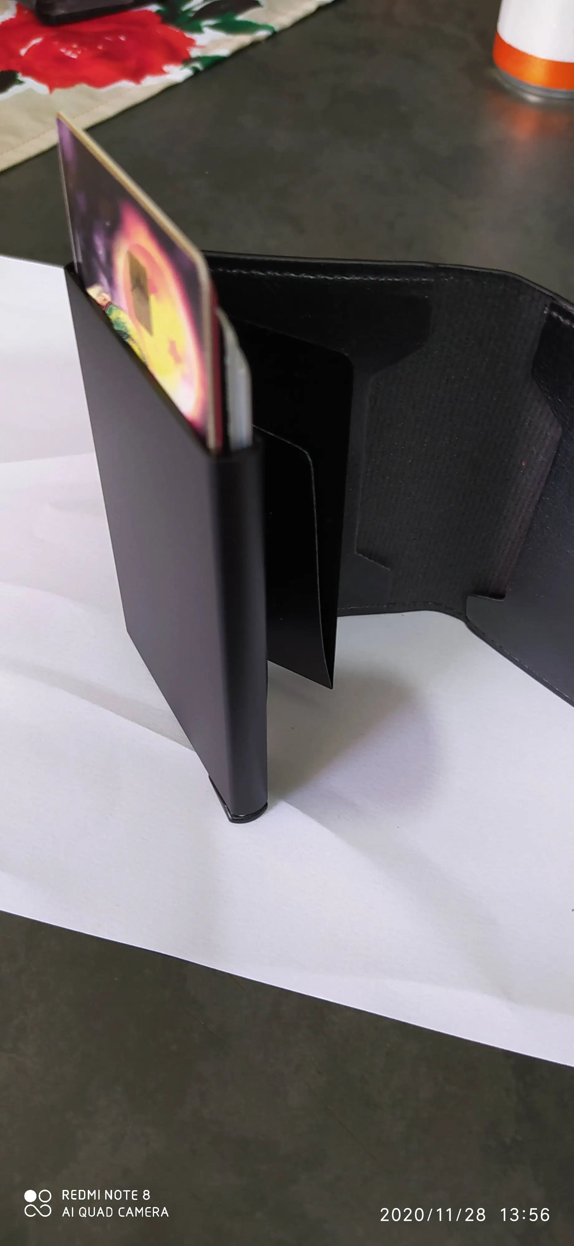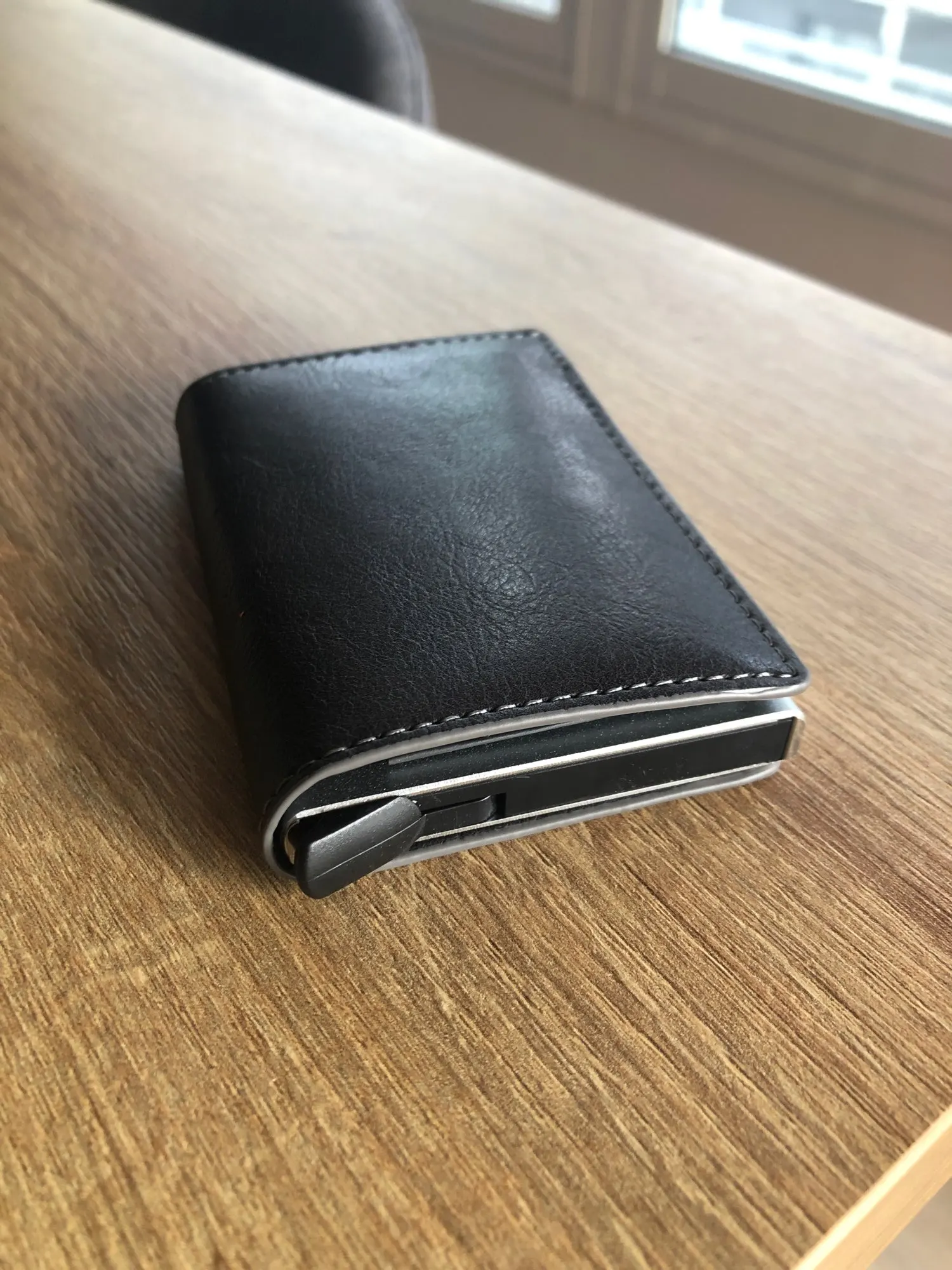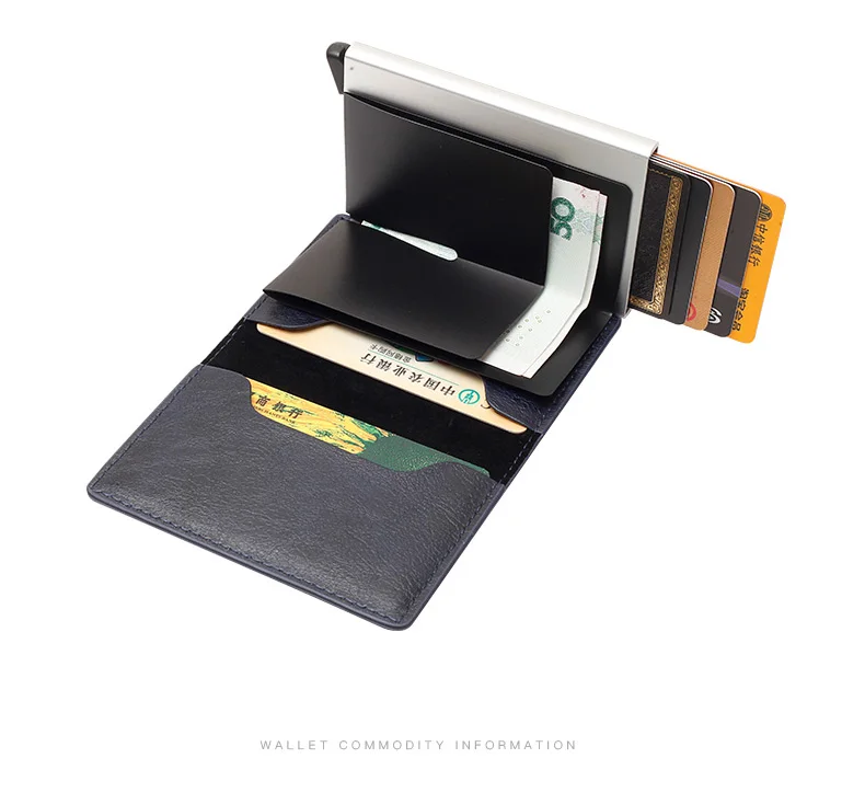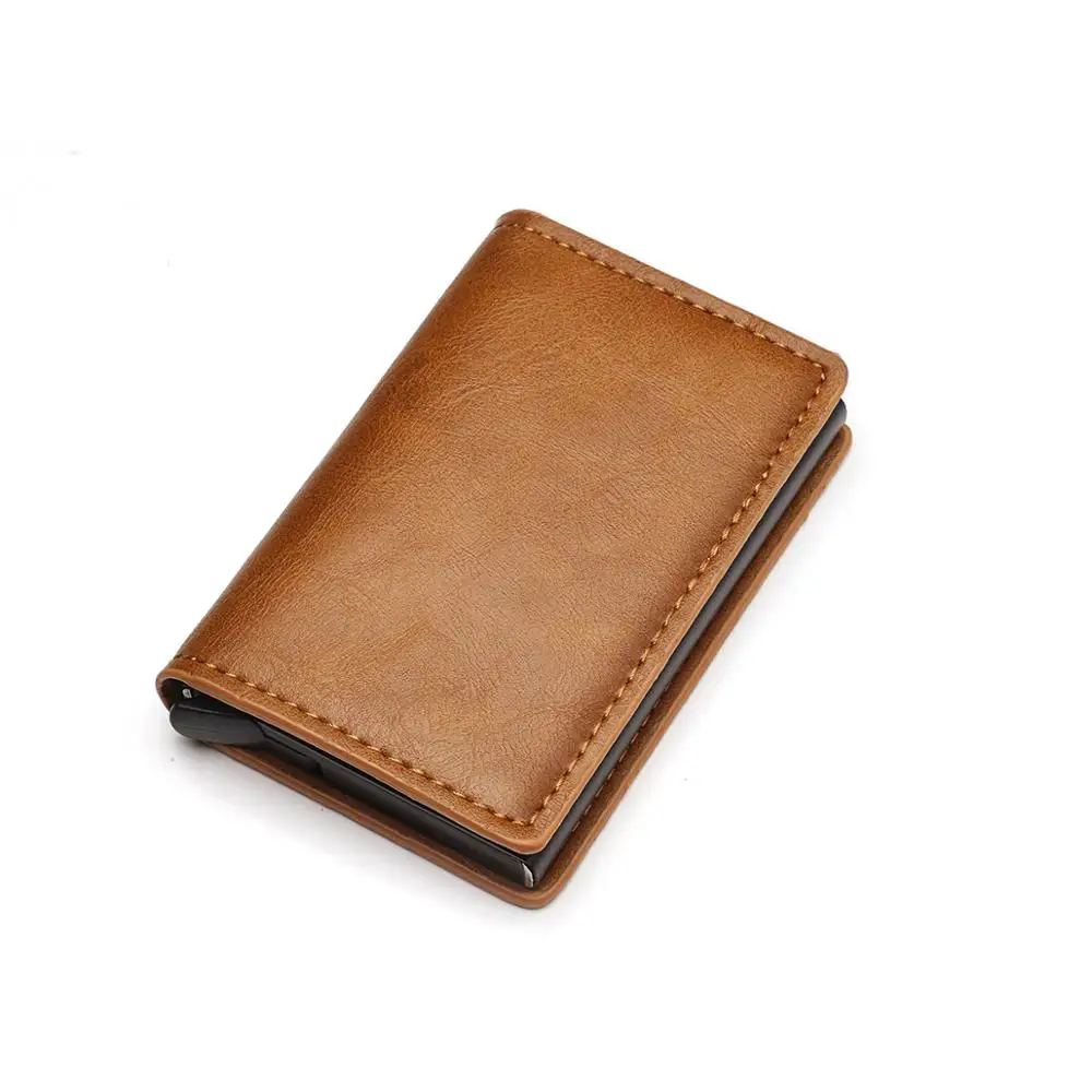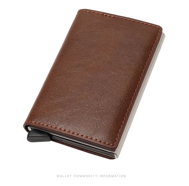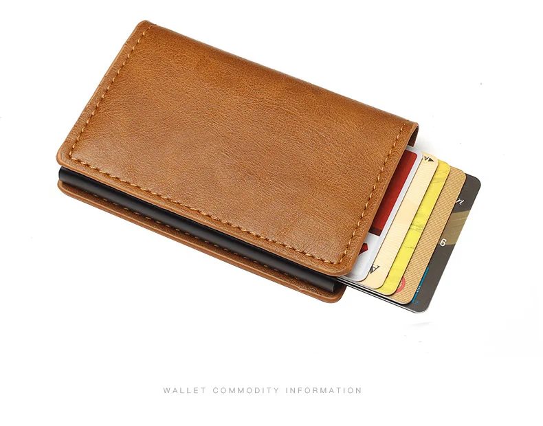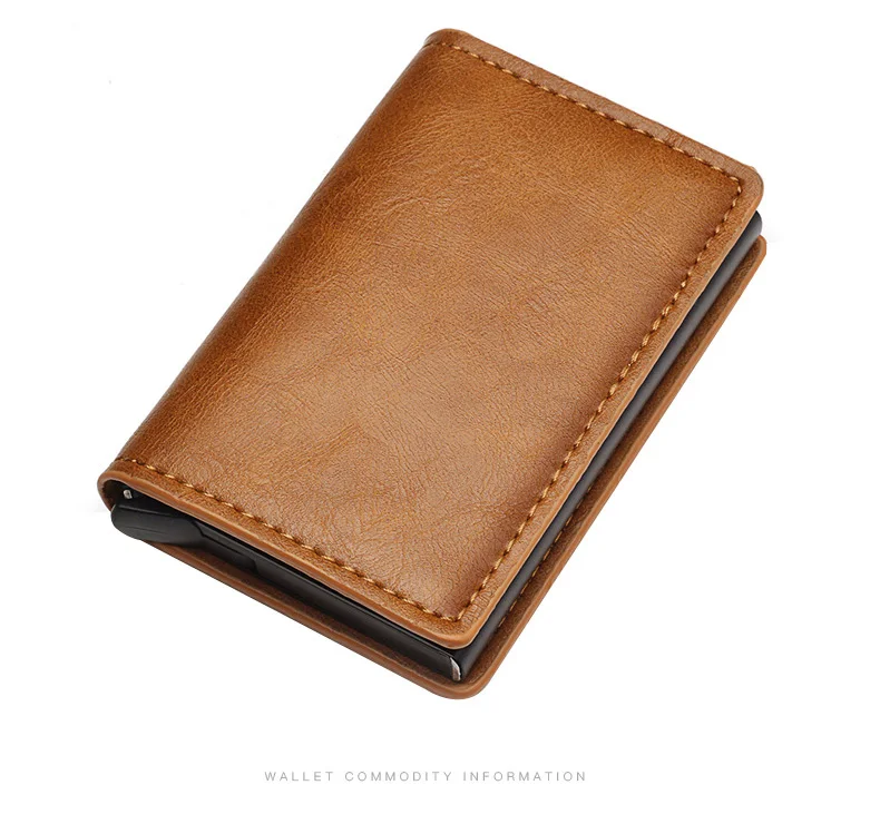 Кошелек унисекс из искусственной кожи, с RFID-защитой, автоматически всплывающий, с алюминиевой отделением для кредитных карт, 2020