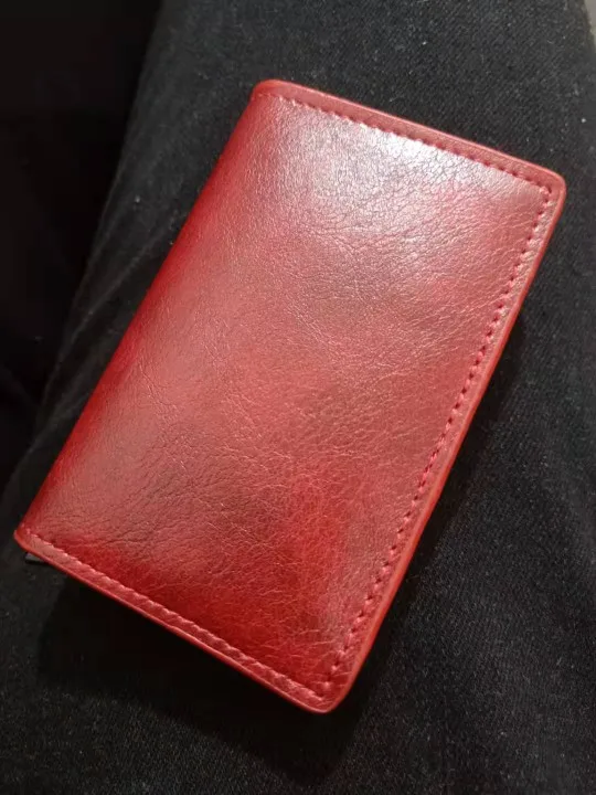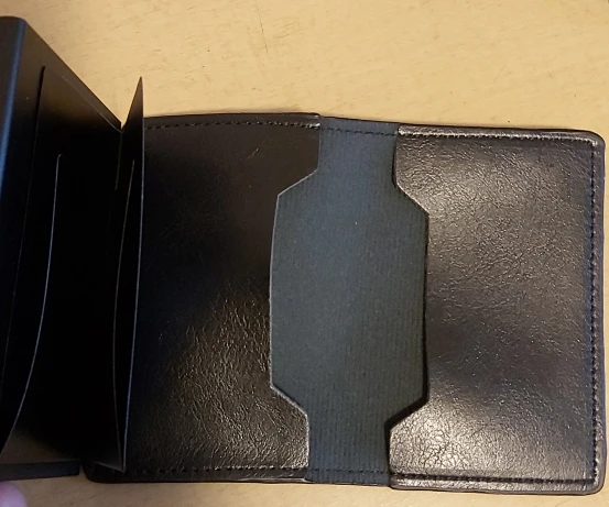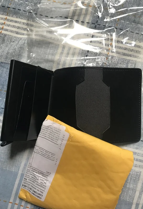 Он прибыл через 11 дней, все правильно, как рекламируется. Механизм карт работает правильно. Материал кошелька несколько тоньше, чем в других моделях того же стиля.