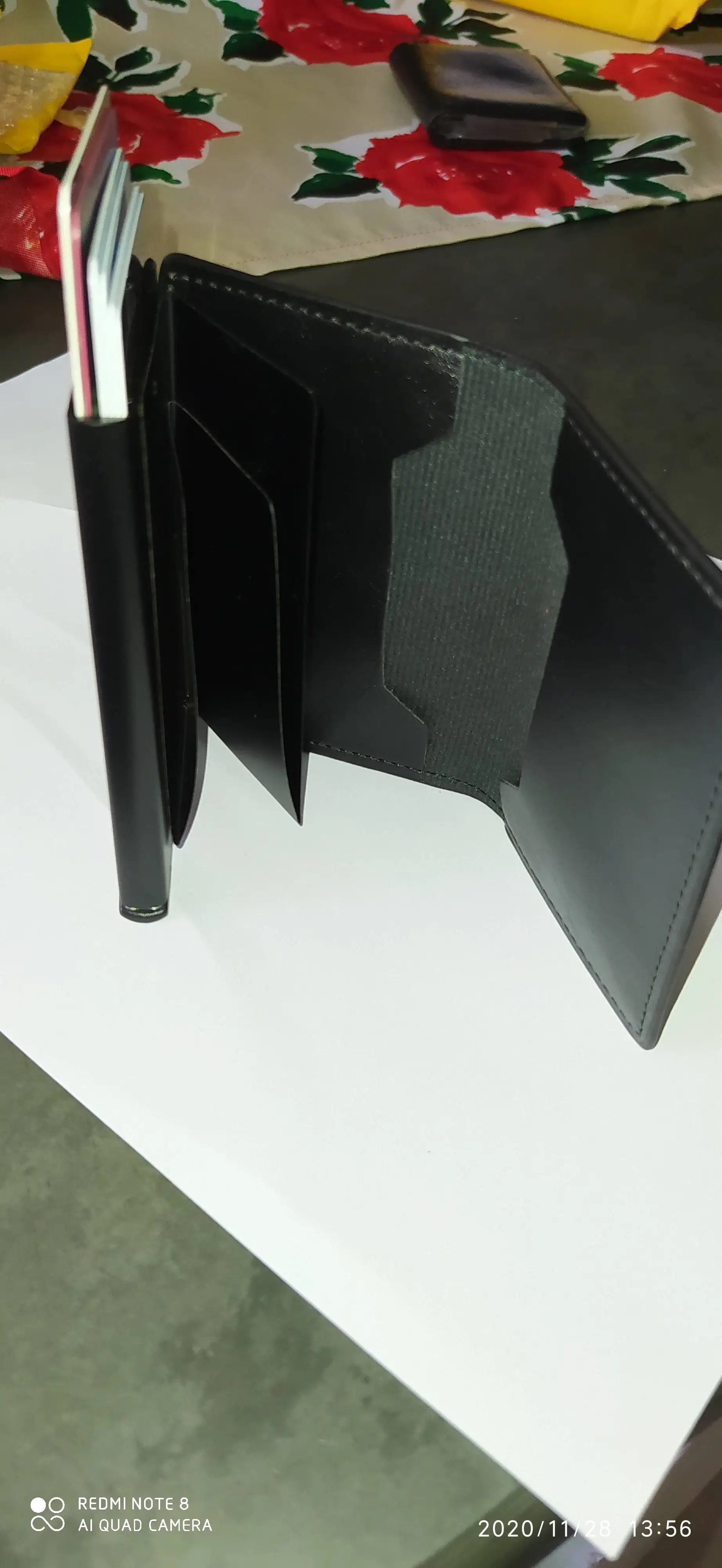 Вещь хорошая. Вам нужно две банковские карты в дополнительных карманах стежков, в противном случае они не очень прочные. Но все хорошо работает.