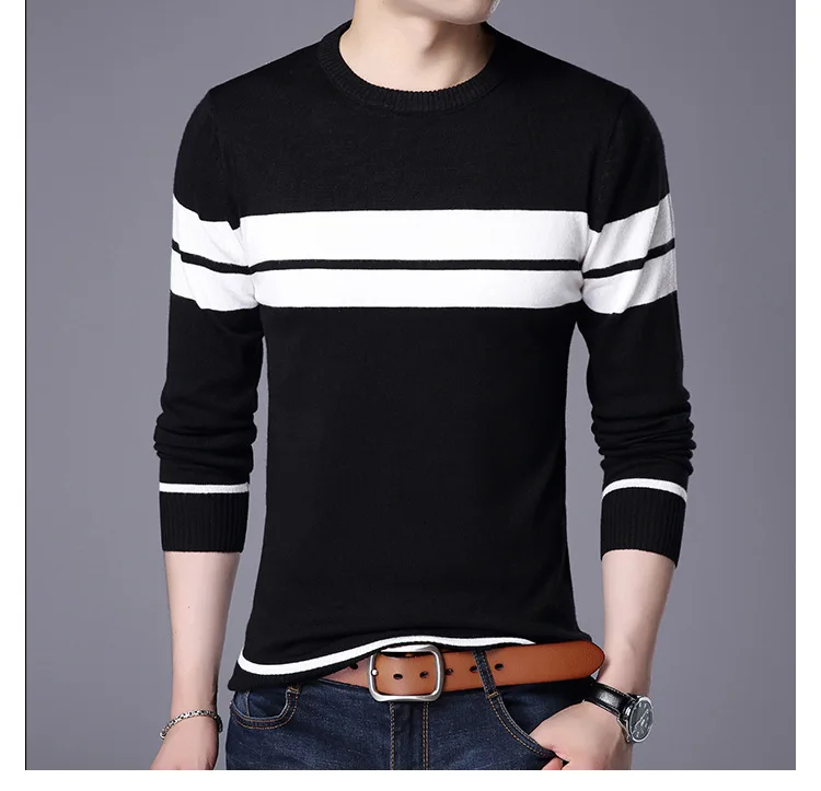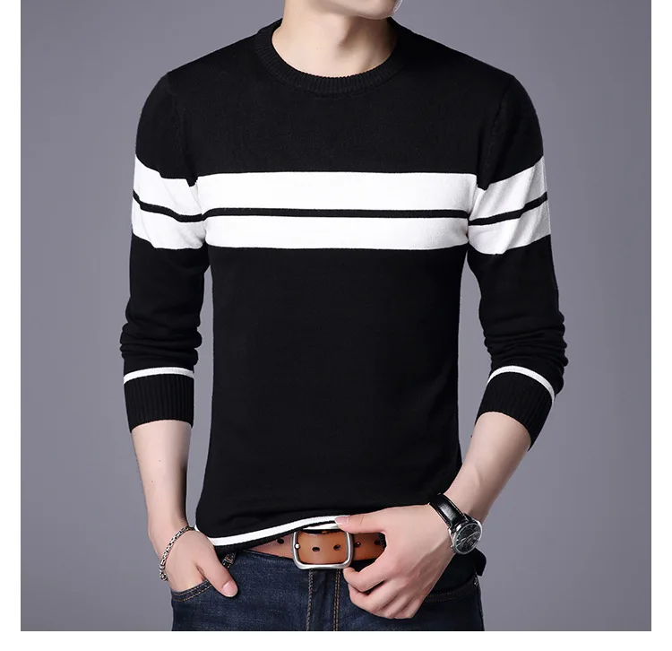 Новинка 2020, мужской тонкий свитер COO в полоску с круглым воротни...