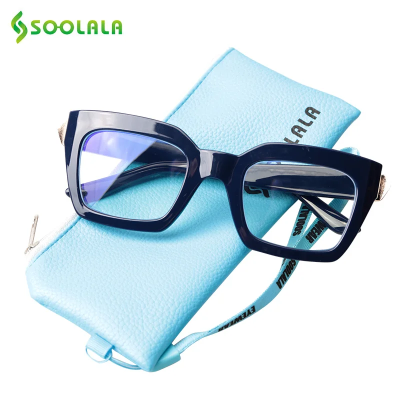 SOOLALA квадратная синяя световая блокировка очки для чтения женские и мужские антибликовые очки для дальнозоркости + 0,5 0,75 1,0 1,25 1,5 2,0 до 4,0