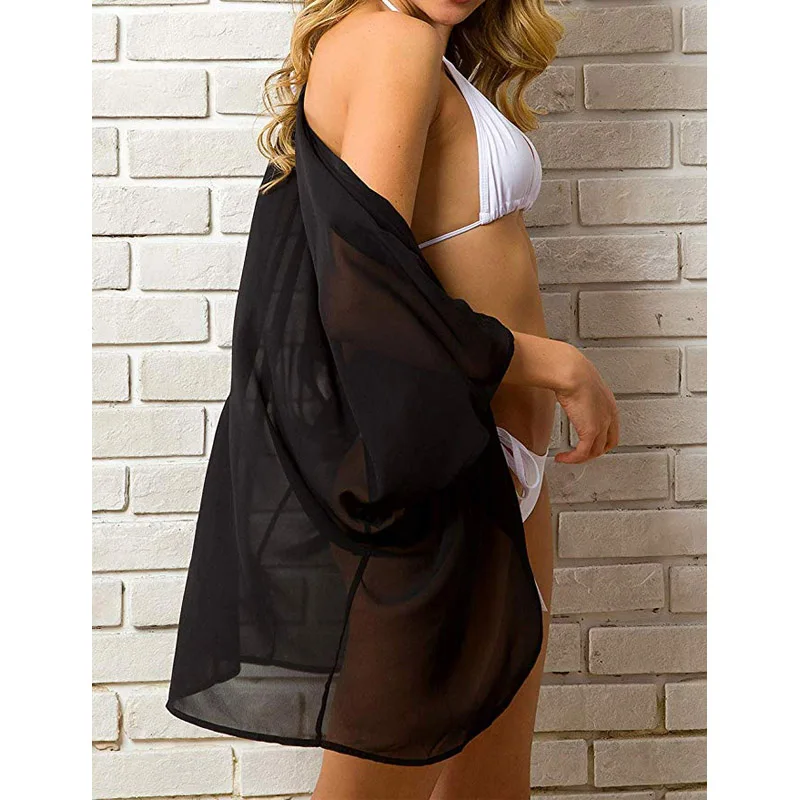 Женское шифоновое кимоно, пляжный кардиган с цветочным принтом, прозрачная накидка для купальника, Длинная блузка, Рубашки, Топы для женщин, лето 2020