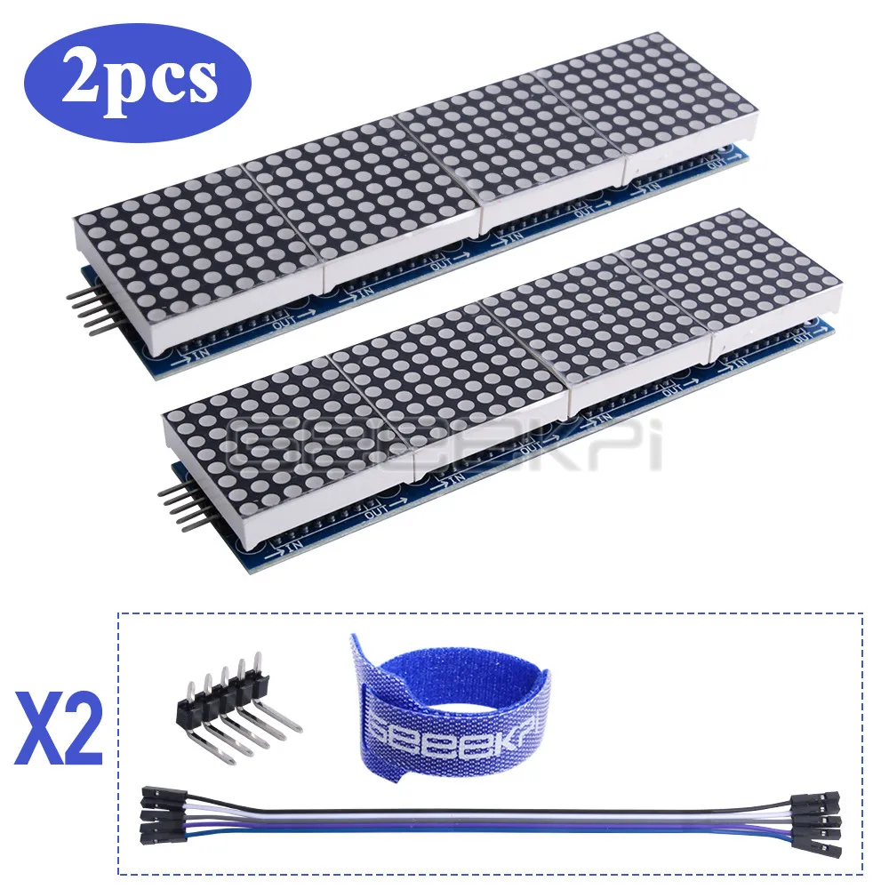 Модуль точечной матрицы GeeekPi, 2 шт., max7218, для микроконтроллера Arduino, 4 в одном дисплей с линией 5P, красныйжелтыйзеленыйсиний