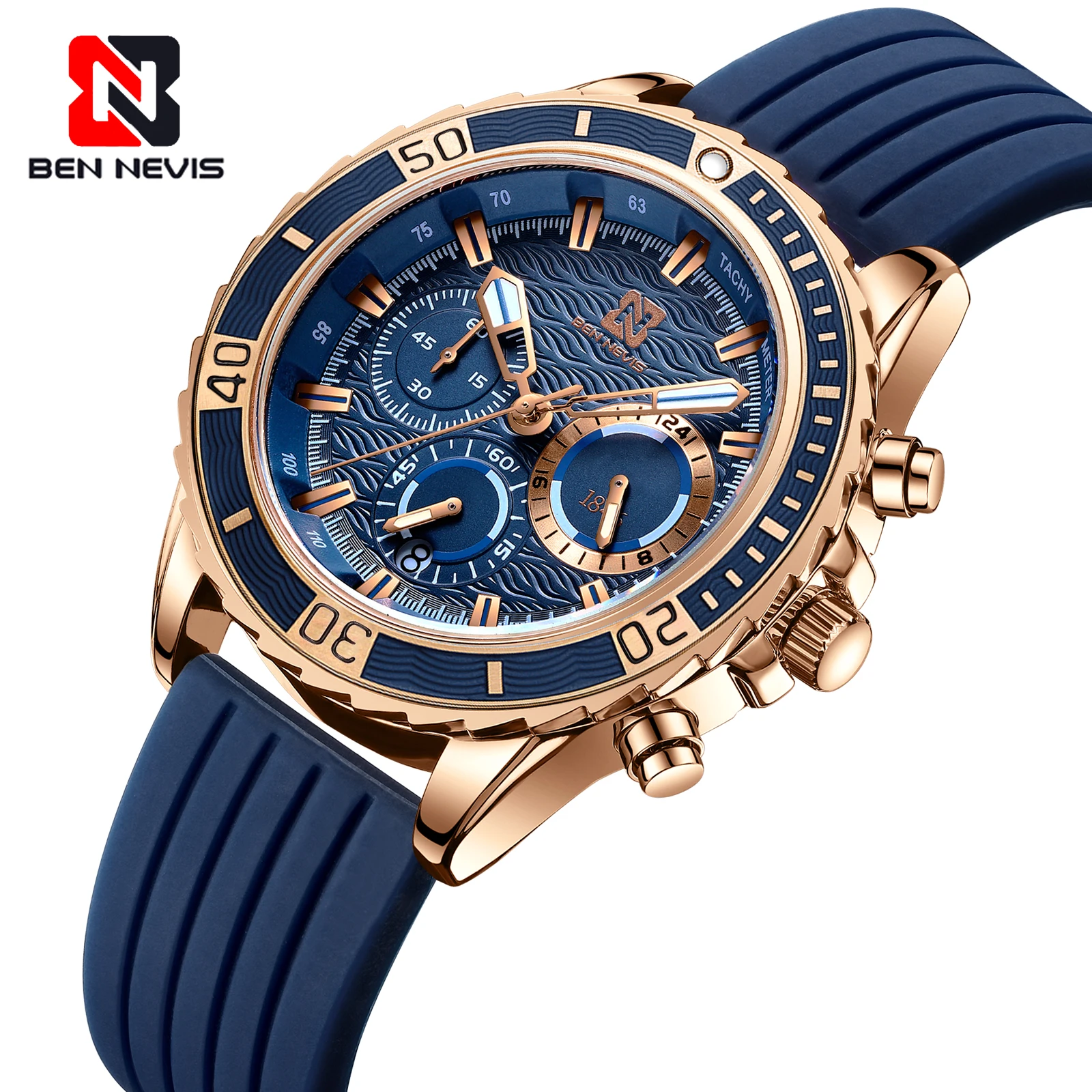 Мужские часы с силиконовым ремешком Ben Nevis, роскошные деловые кварцевые часы, повседневные военные часы, relogio