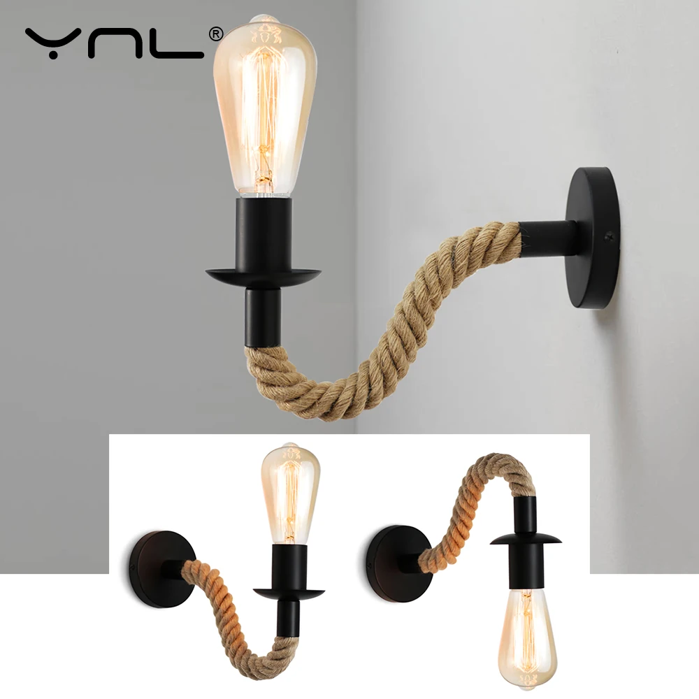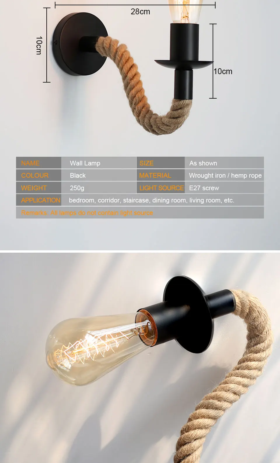 Ретро пеньковая веревка промышленный Лофт настенный светильник винтажный декор настенные светильники для гостиной внутренние бра свет декоративный