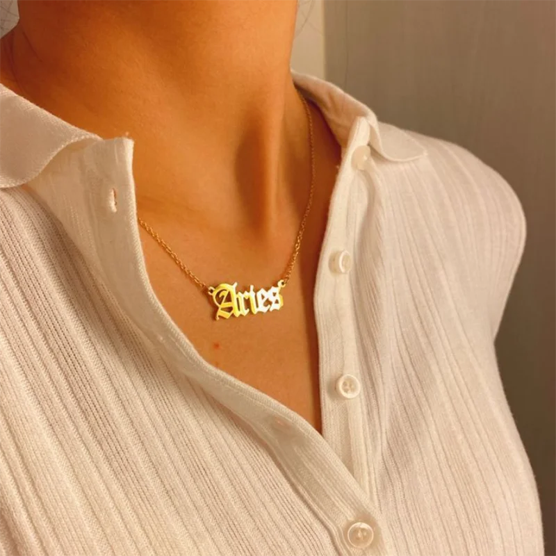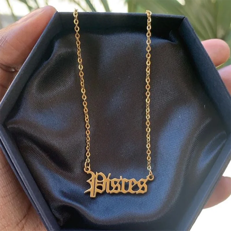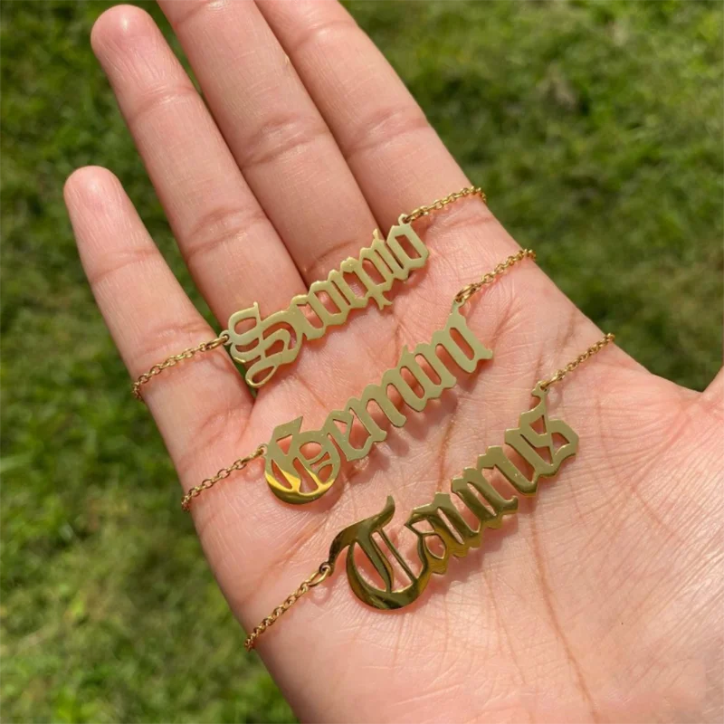 Нержавеющая сталь 12 созвездий ожерелье для женщин зодиака старый английские буквы ожерелье Телец Овен модное колье, ювелирное изделие, подарок