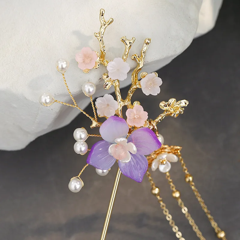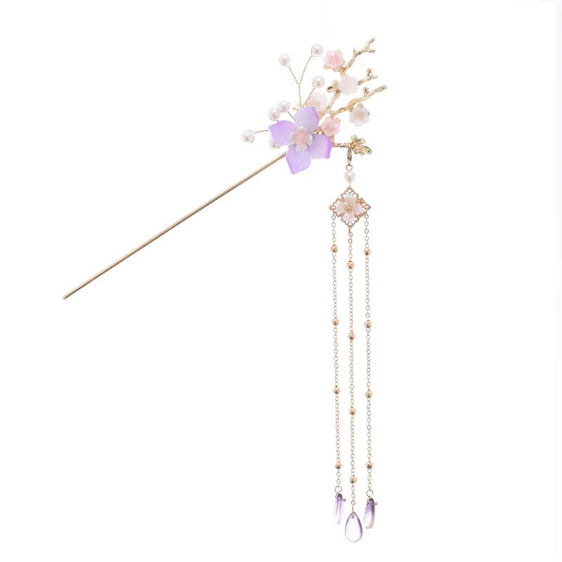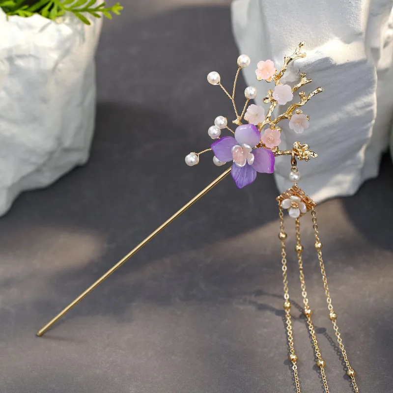 Заколки для волос FORSEVEN в стиле ретро с жемчугом и цветами, заколки с длинной кисточкой в китайском стиле, ювелирные украшения для волос для женщин и девушек