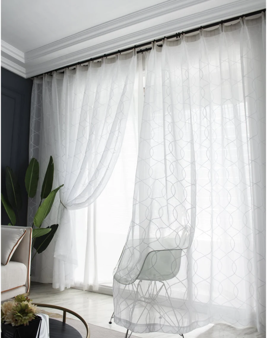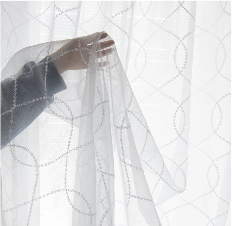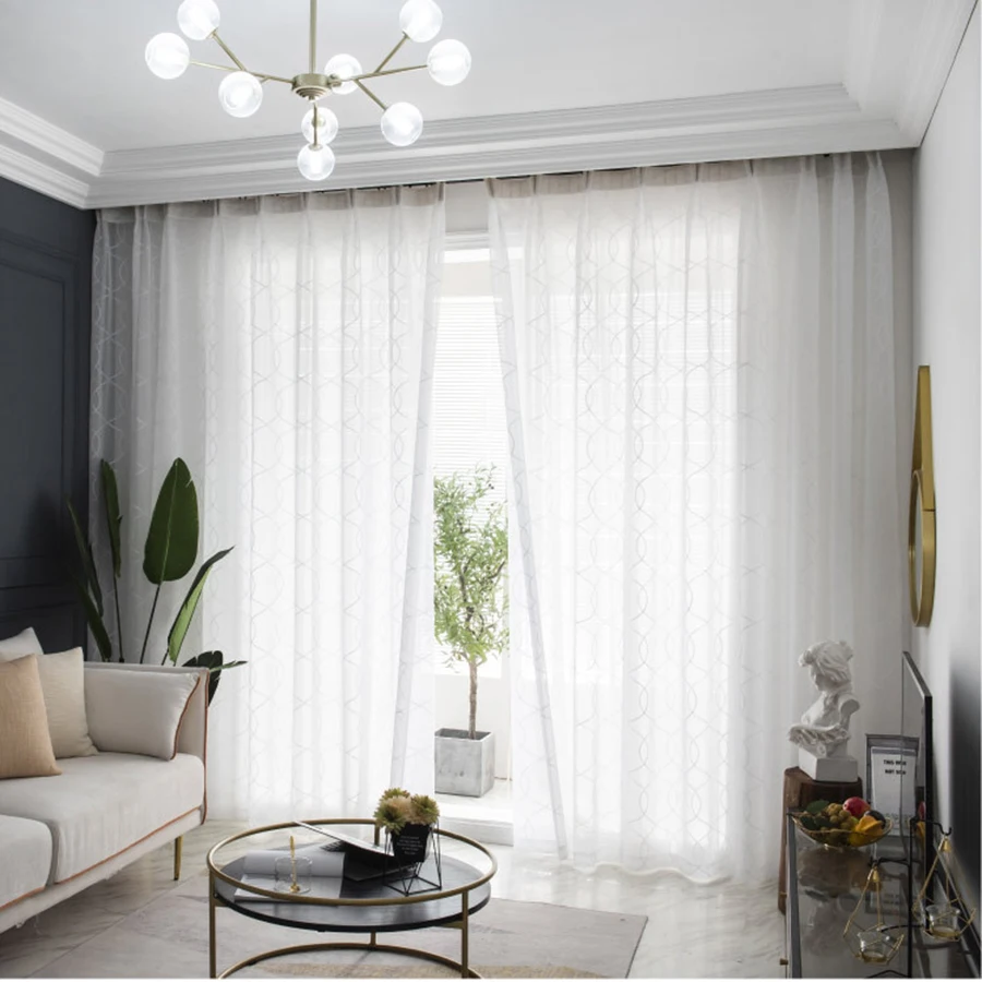 Занавеска из тюля с геометрическим изгибом, белая, с вышивкой, для гостиной, Современная сплошная занавеска для спальни, жалюзи, вуаль, X-M236-3