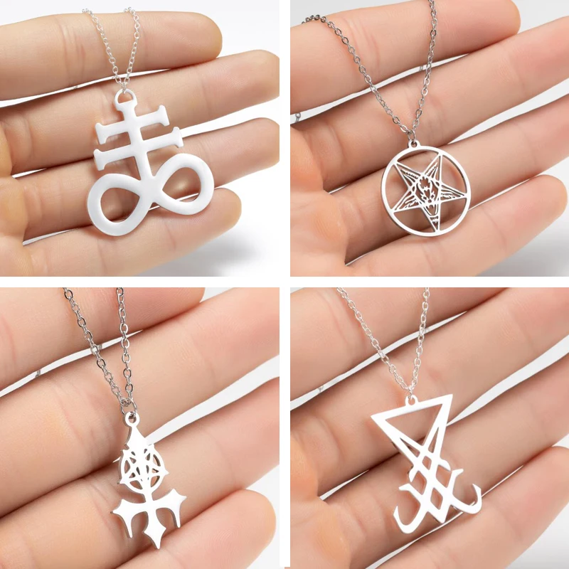 Сатанинский символ ювелирные изделия талисман из нержавеющей стали Левиафан Крест Подвеска со змеевидным камнем ожерелье сатанинская шпилька патч-колье с Люцифером