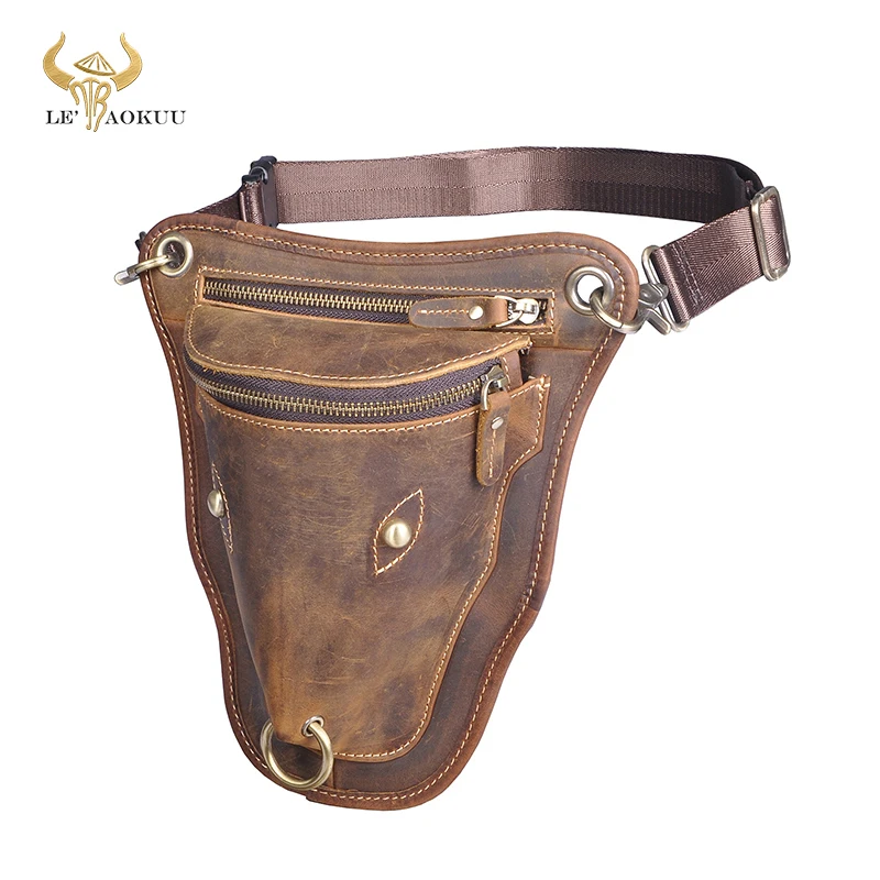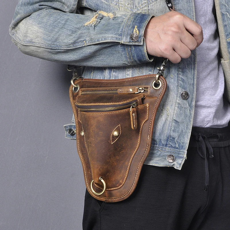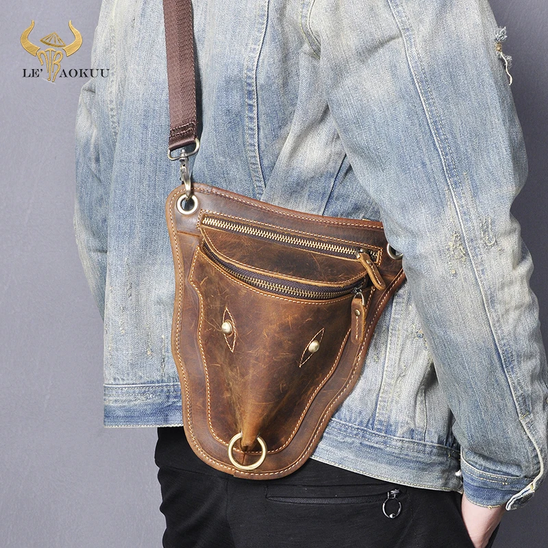 Повседневная классическая мужская сумка-слинг из натуральной кожи, модная забавная дорожная поясная сумочка коричневого цвета для ног, 833