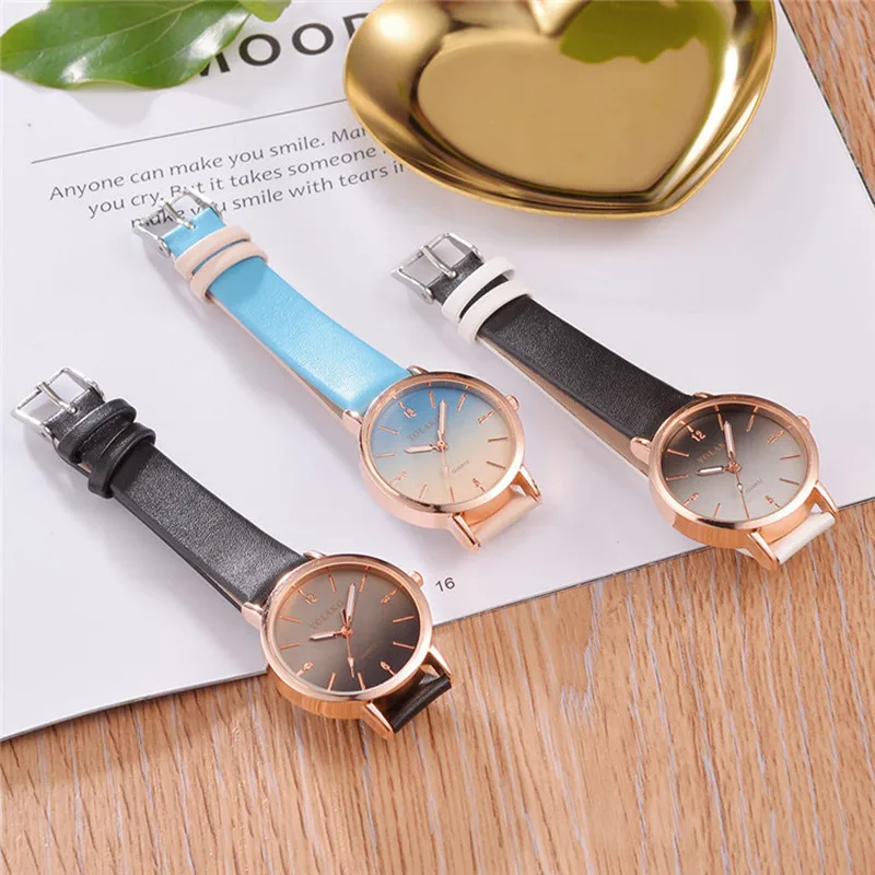 Часы женские кварцевые с кожаным ремешком, градиентные, аналоговые