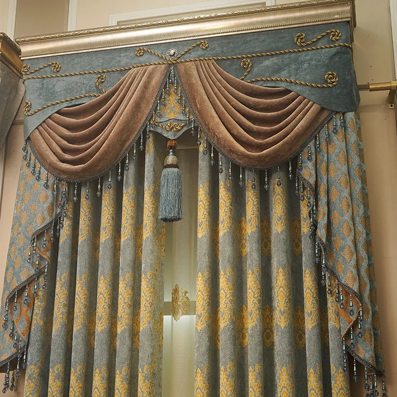 Шторы шелковые жаккардосветильник, с золотым принтом, для гостиной ...