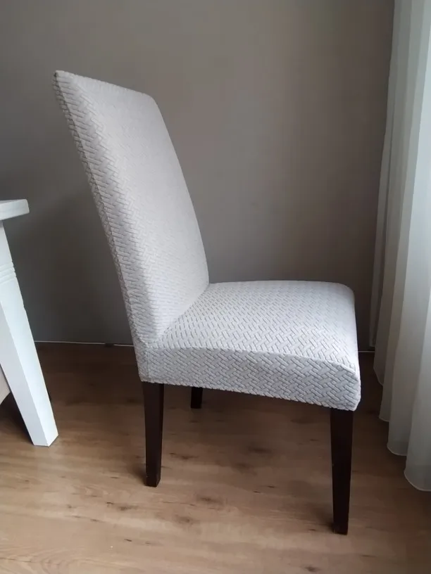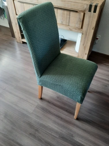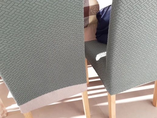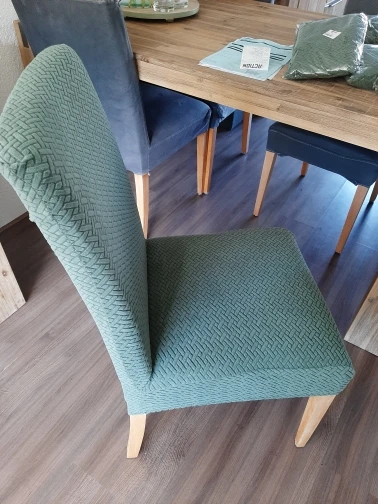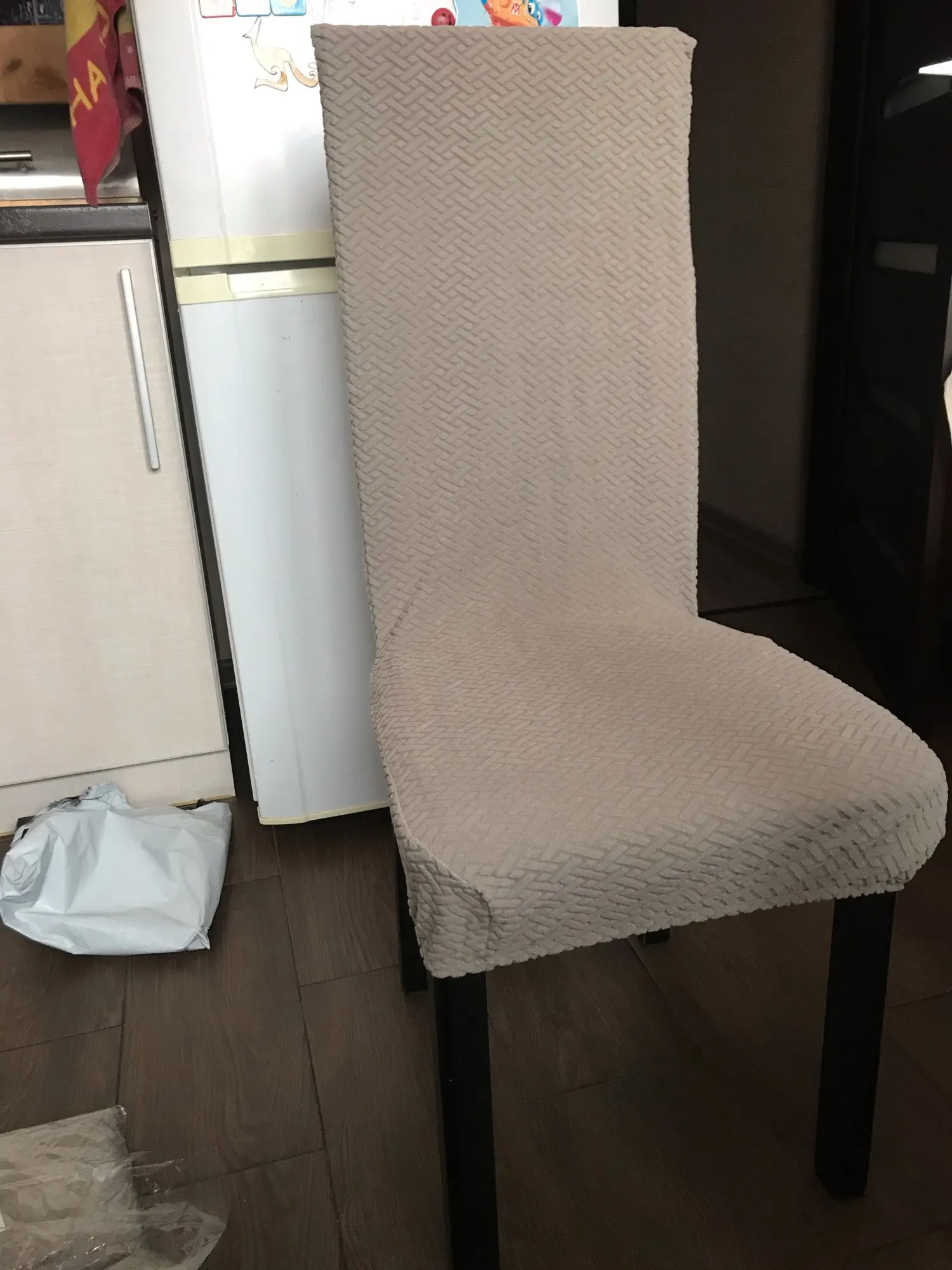 Чехлы очень хрошие. Приятные на ощупь и неплохо смотрятся на стульях. Быстрая доставка. Покупкой очень довольна.