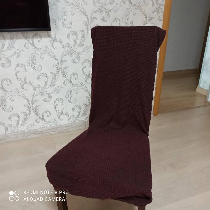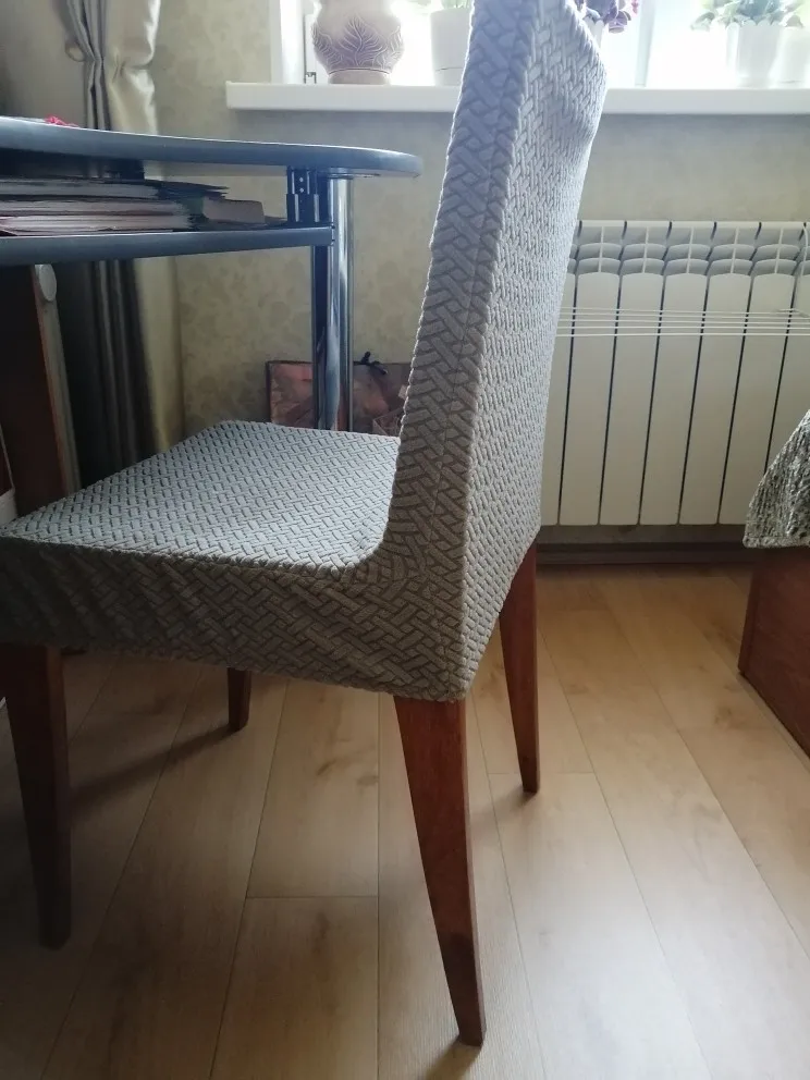 Хорошие чехлы по нормальной цене. Качество и цвет понравились. На наши стулья немного великоваты.