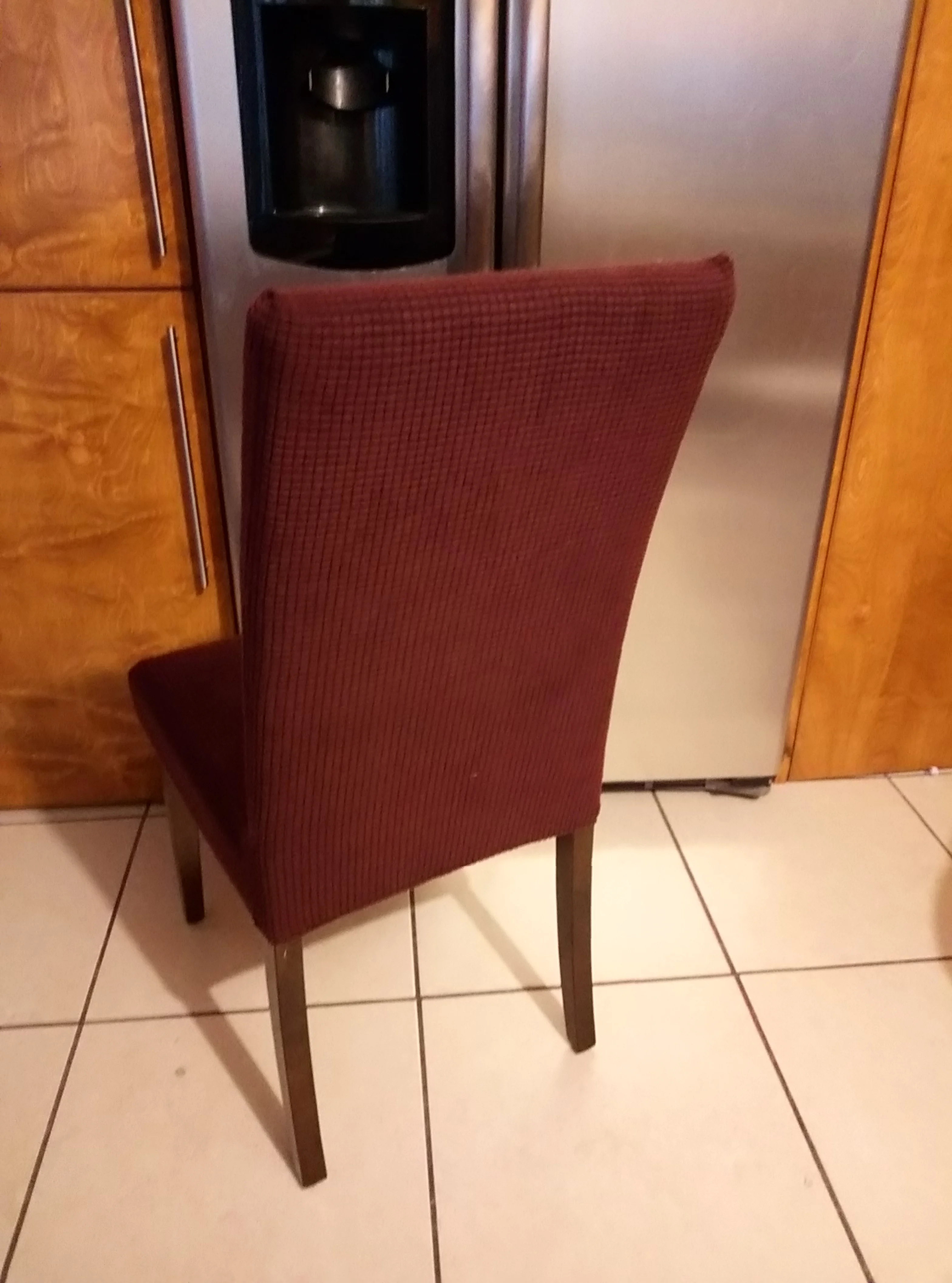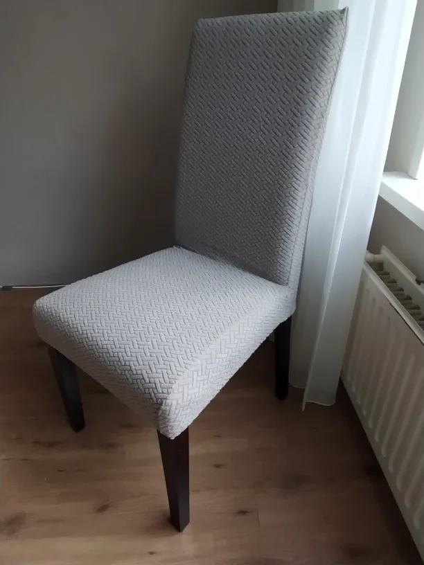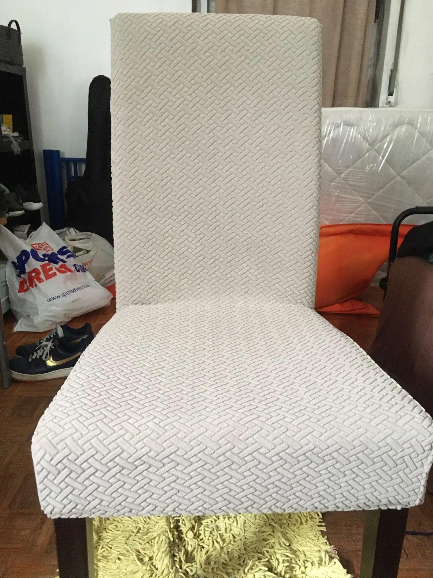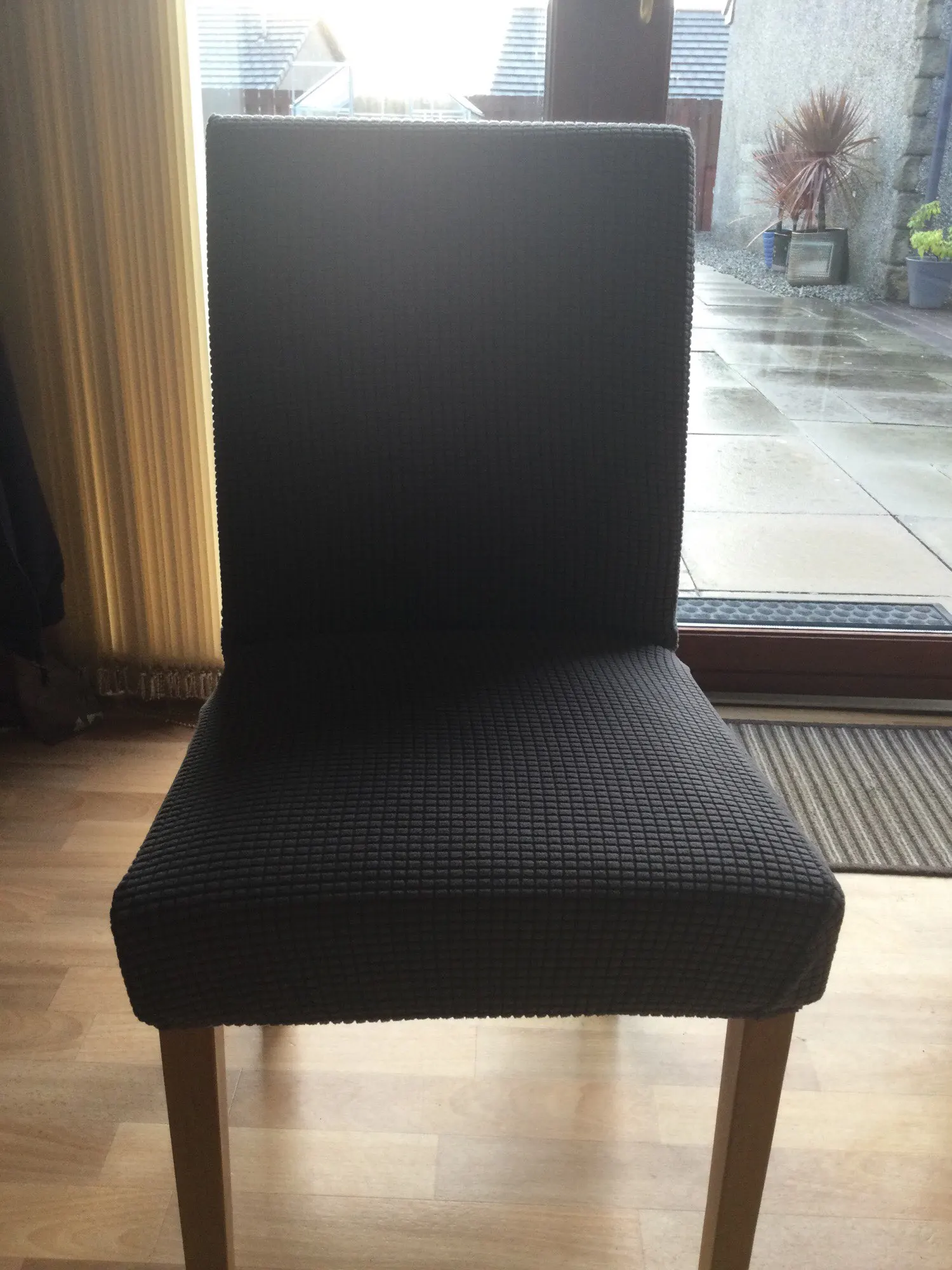 Милые чехлы для стульев, немного Длинные для задней части наших стандартных стульев, могут быть закреплены, но лучше оставить для легкого доступа к стирке. Быстрая доставка, цвет соответствует описанию и доволен качеством.