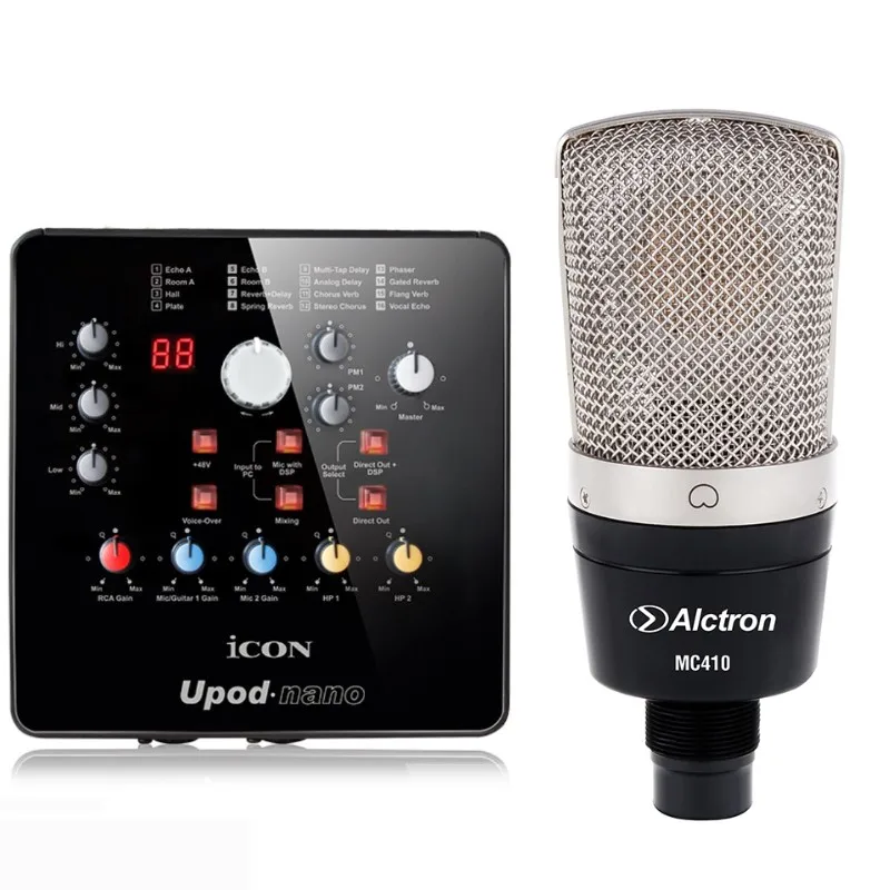 Alctron MC410 и звуковая карта ICON Upod nano, профессиональный конденсаторный микрофон для записи, для студийного и прямого вещания