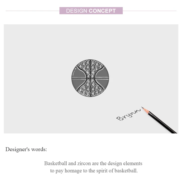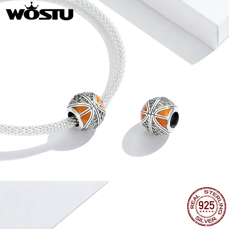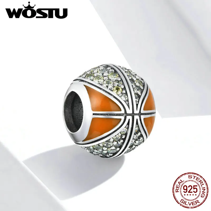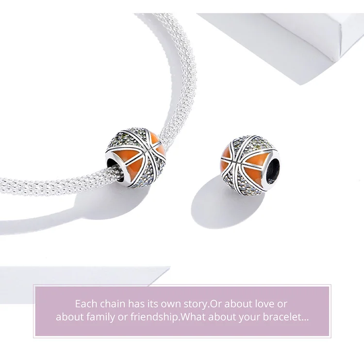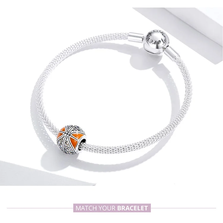 Шарм-подвеска для баскетбола из серебра 925 пробы, с фианитом