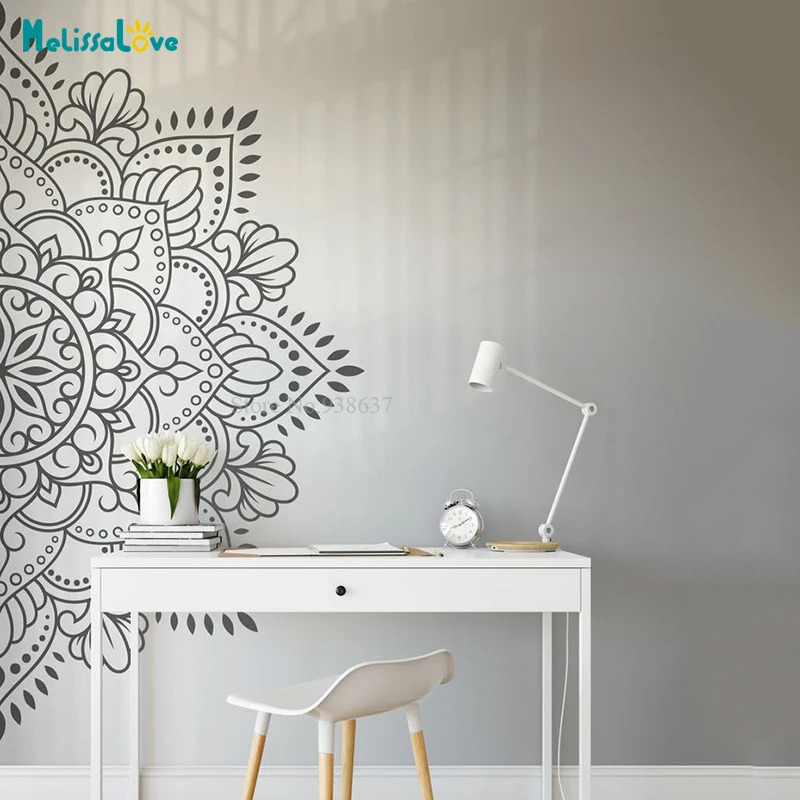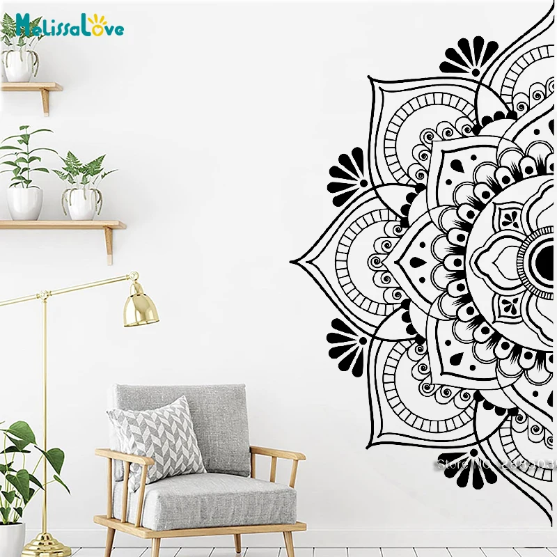 24 стиля в наличии, половинная наклейка с цветами, Йога, студия, спальня, изголовье кровати, Декор, Съемные Виниловые настенные наклейки BA000