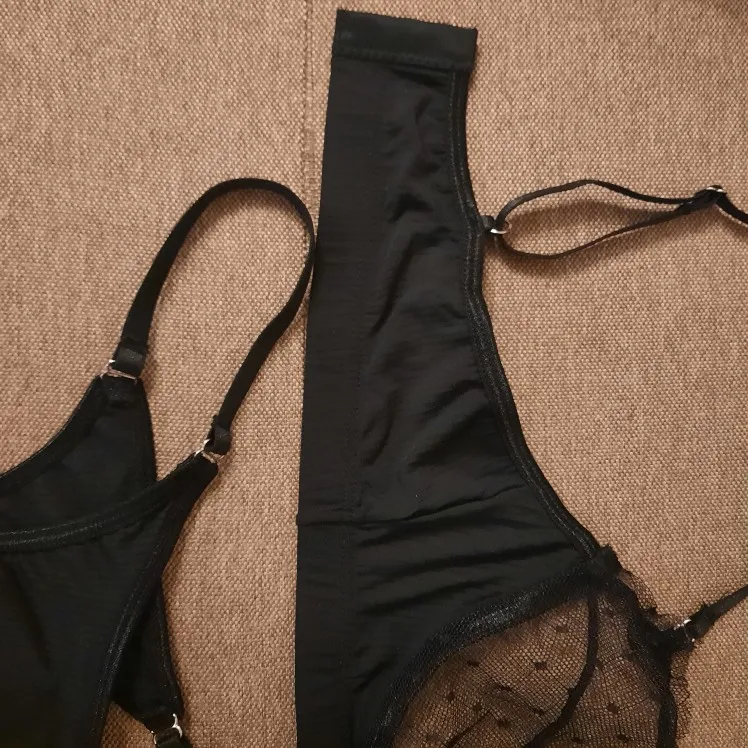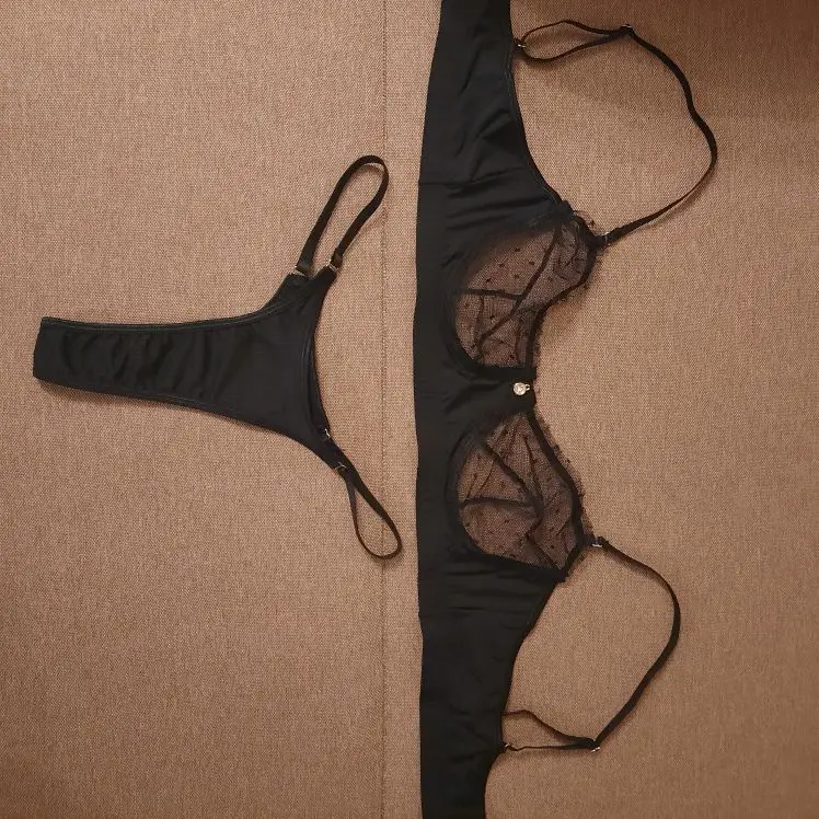 Отличный аналог дорогому белью в известных магазинах. Материал пушка, на маленькой груди смотрится, неожиданно, идеально. Стринги на любителя, на мои параметры смотрится не очень.