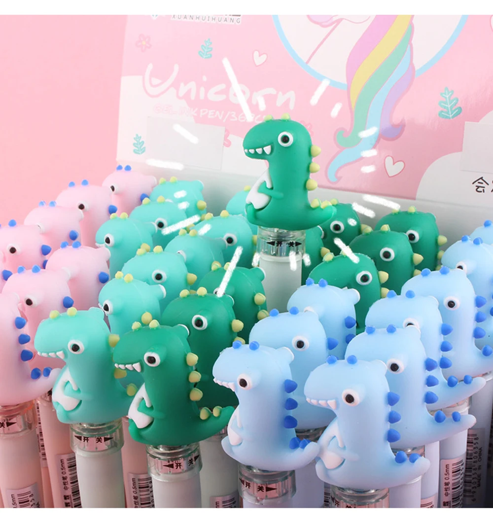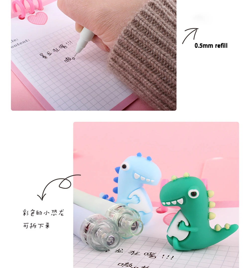 Ручка со светодиодсветильник кой в виде динозавра, нейтральная мультипликационная гелевая ручка, 1 шт.