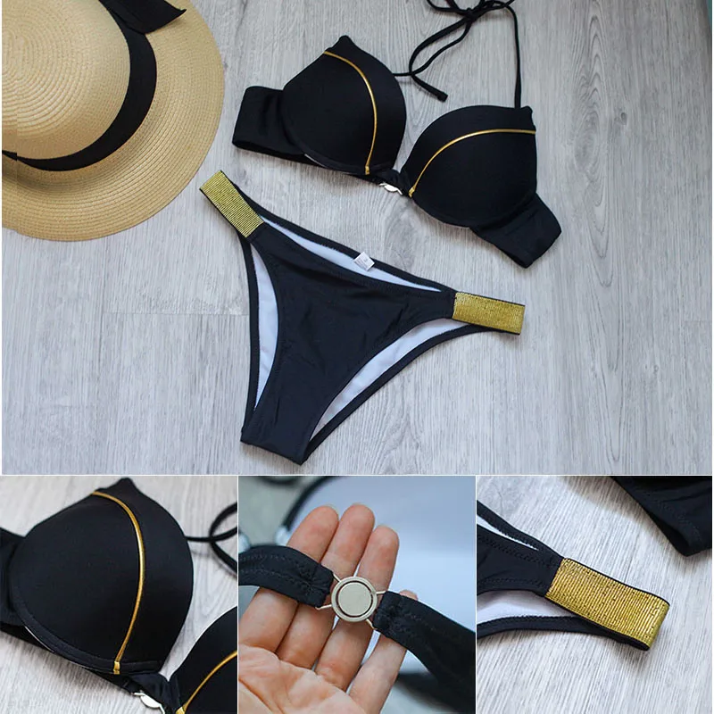 Соблазнительное однотонное черное бикини с эффектом пуш-ап, новинка...