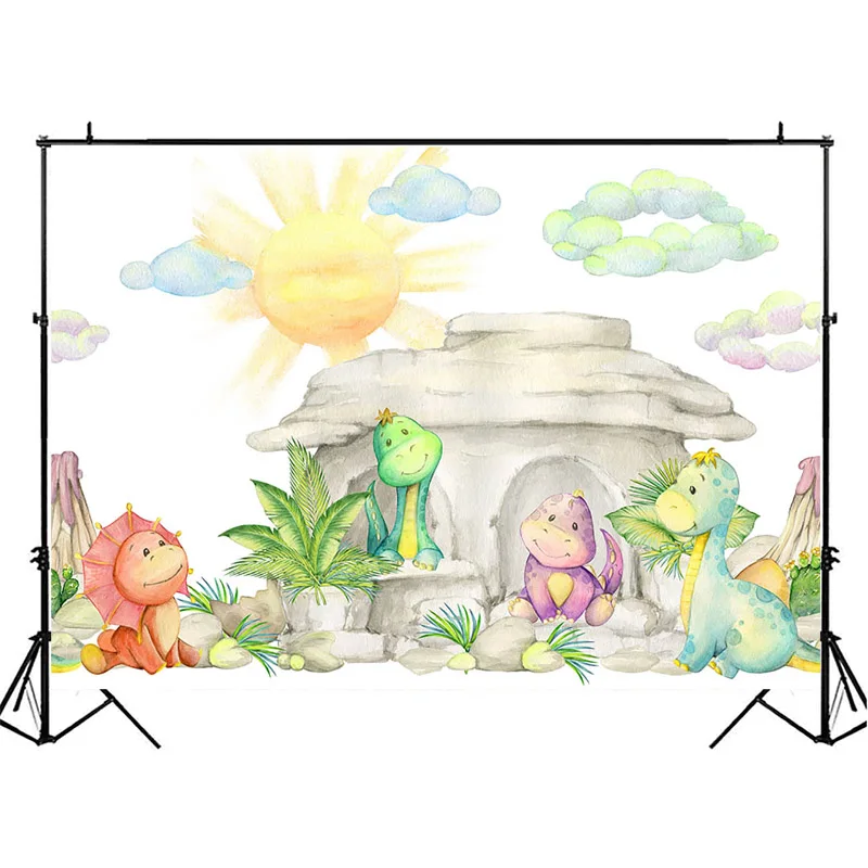 Фон для фотосъемки с изображением динозавра из мультфильма Солнечный Зеленый лист, Декорации для первого дня рождения, принадлежности для фотосъемки