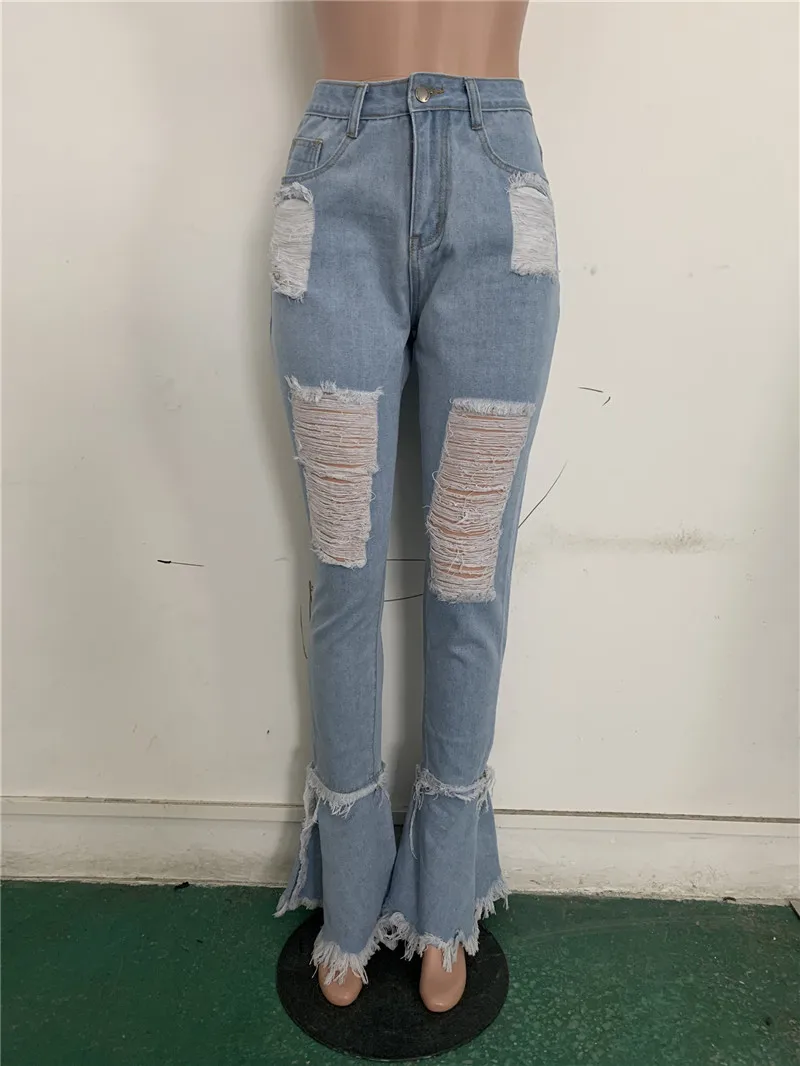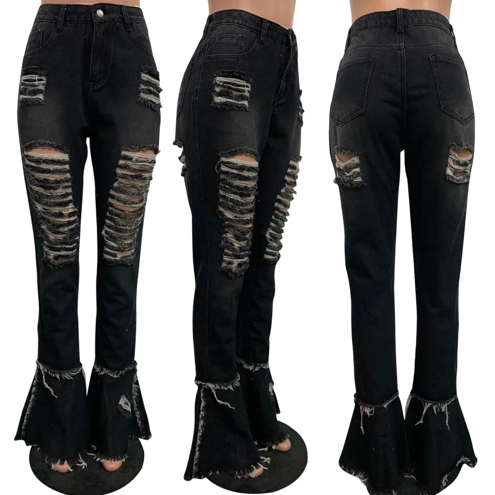 Adogirl, Классические джинсовые брюки с бахромой и оборками, рваные джинсы, расклешенные брюки
