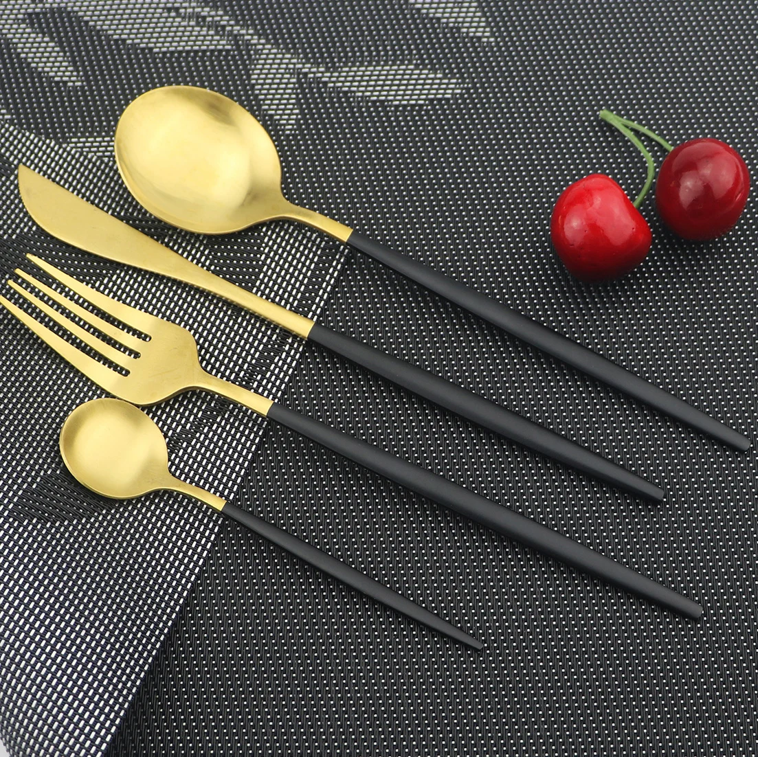 Набор столовых приборов из нержавеющей стали 304, комплект из 24 предметов, матовые черные и золотые ножи, вилки, ложки, набор серебряных изделий, кухонные приборы