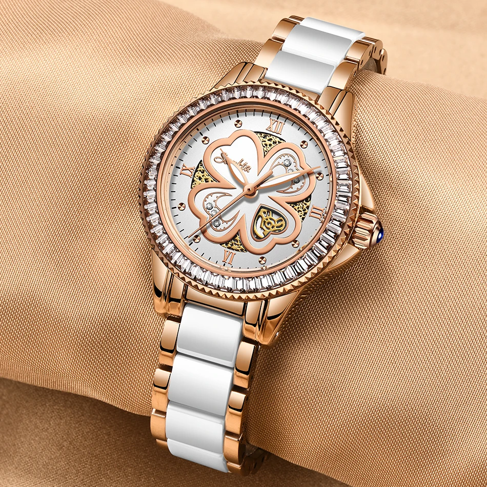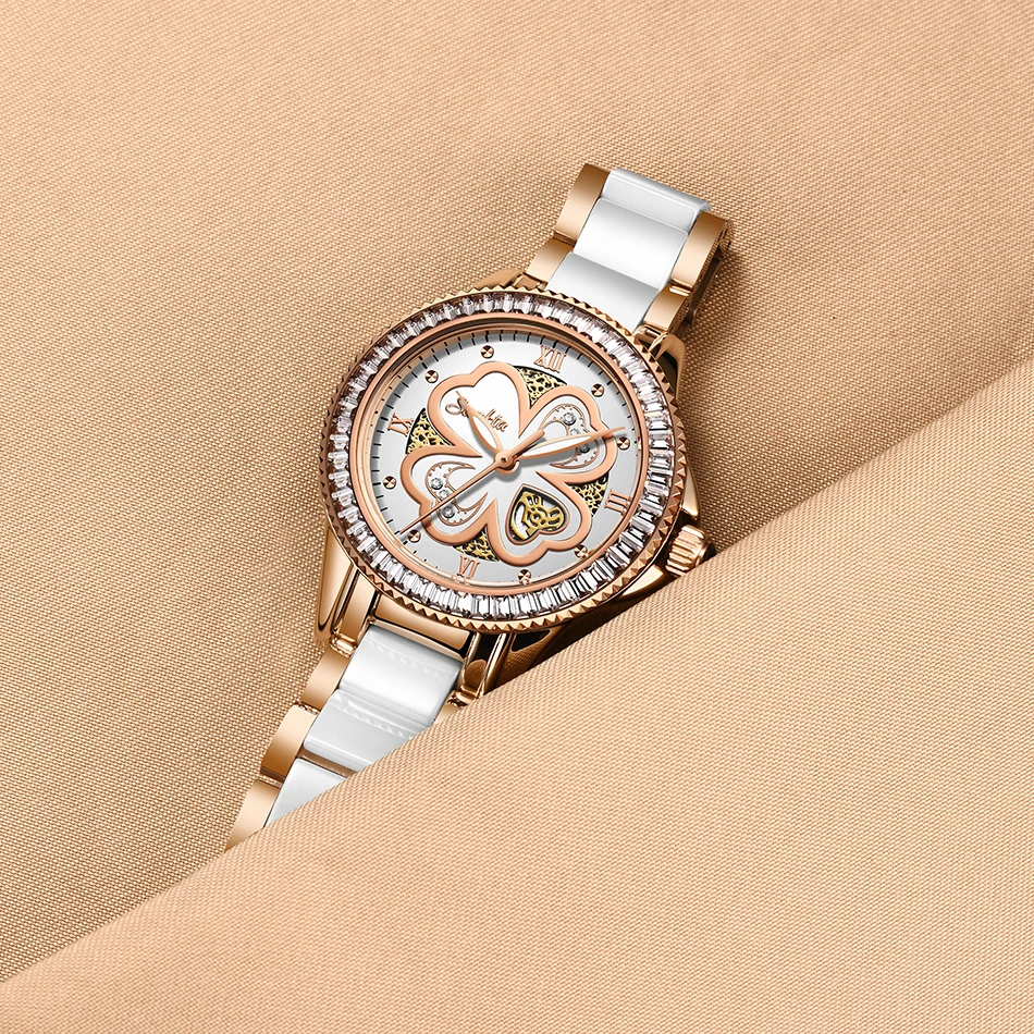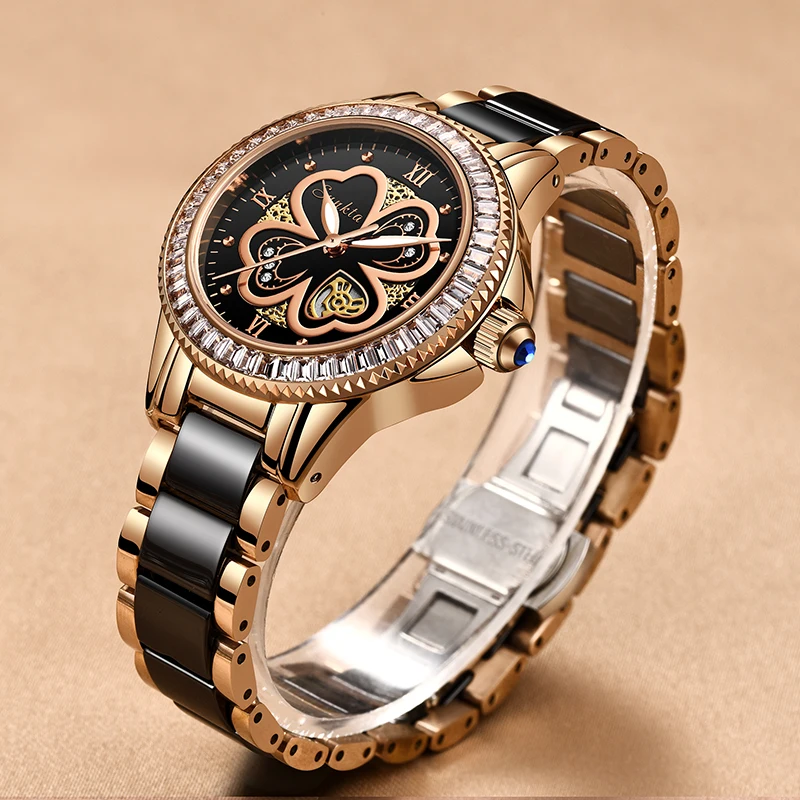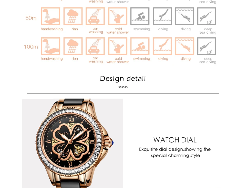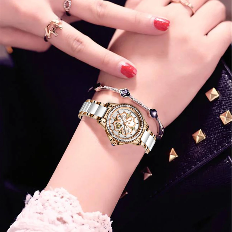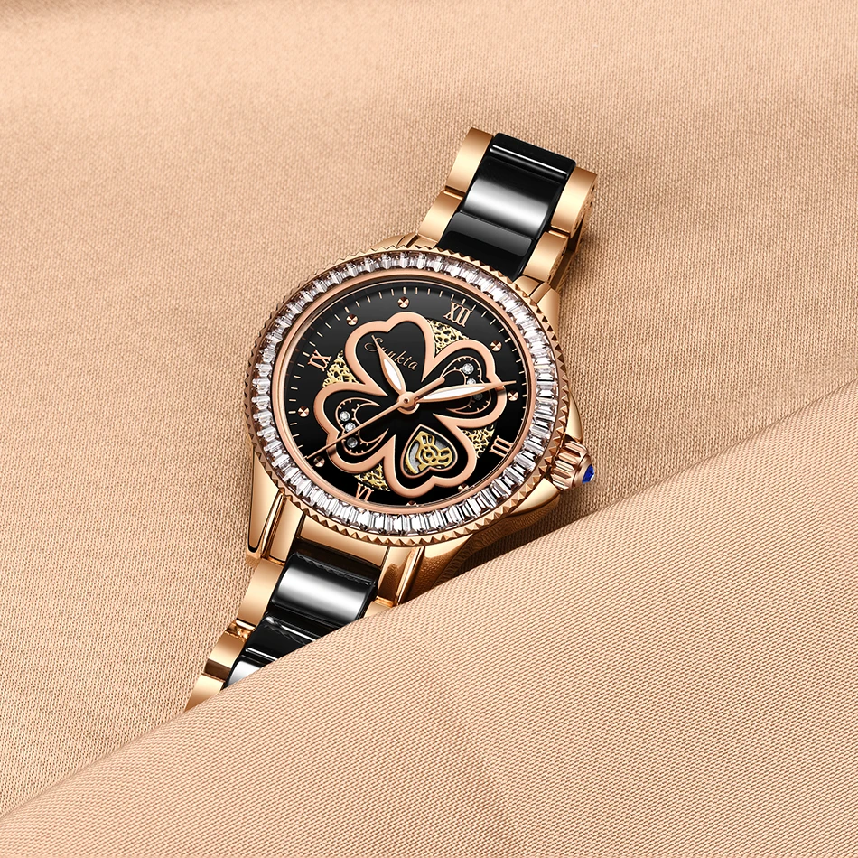 Часы наручные женские SUNKTA, креативные роскошные керамические, с браслетом из розового золота
