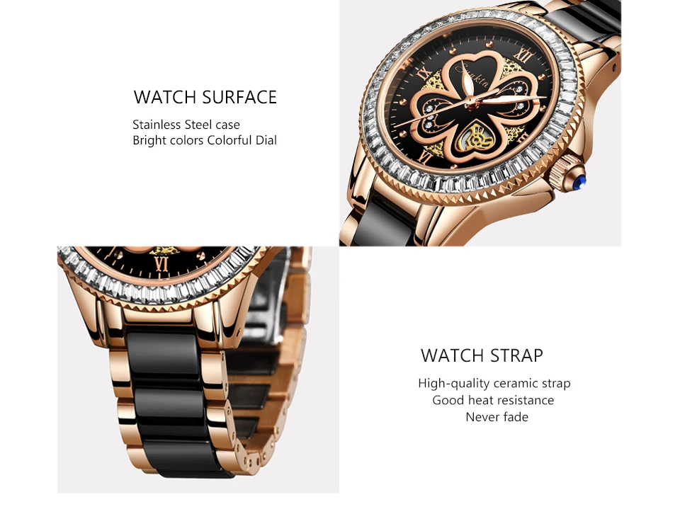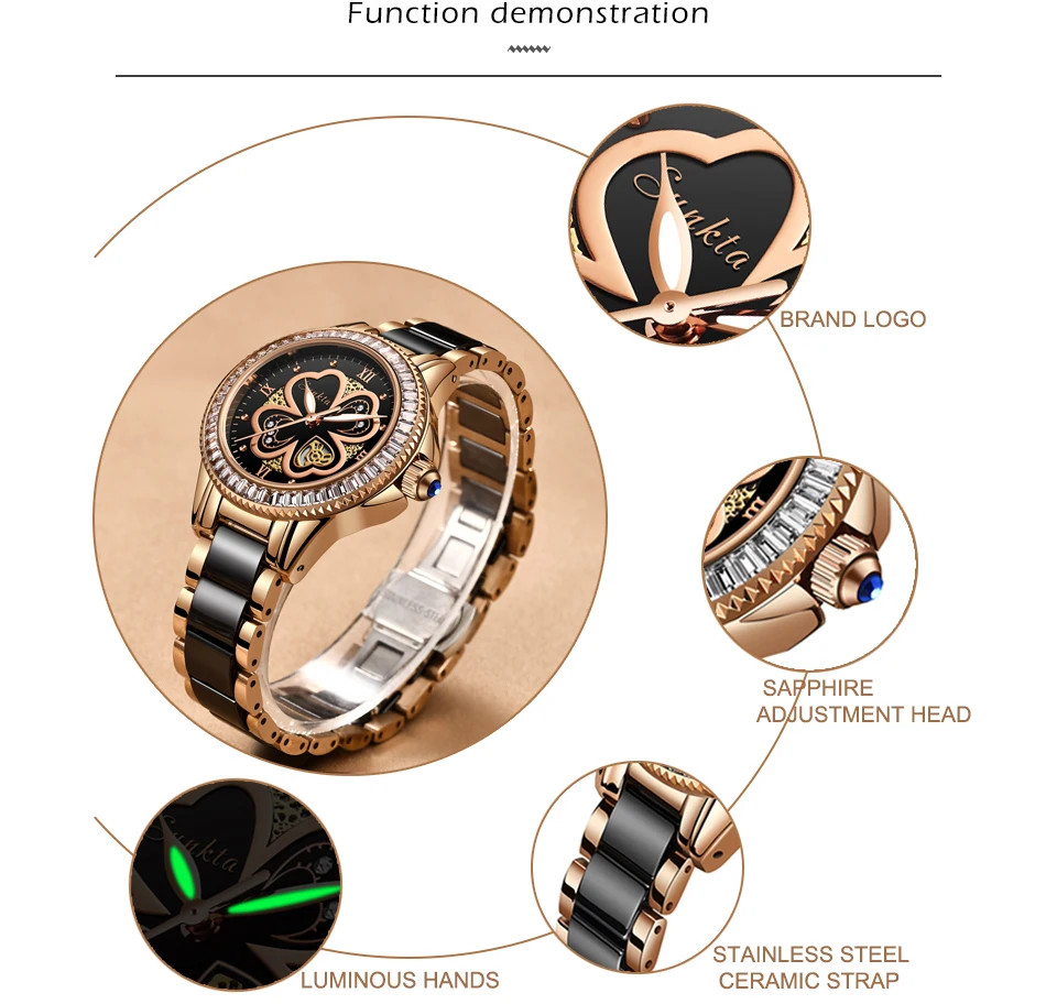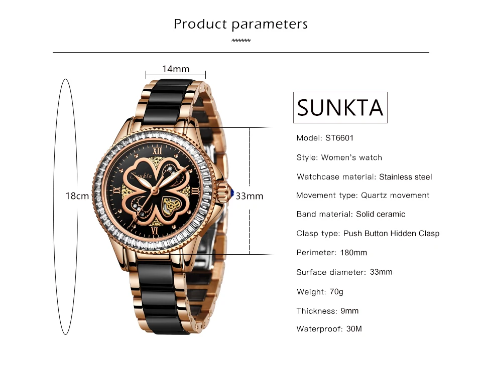 Часы наручные SUNKTA женские кварцевые с керамическим браслетом