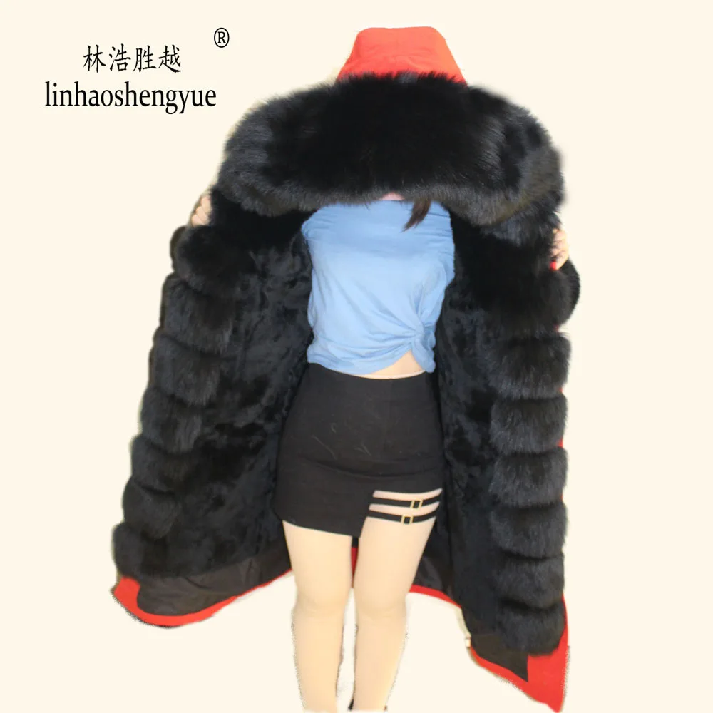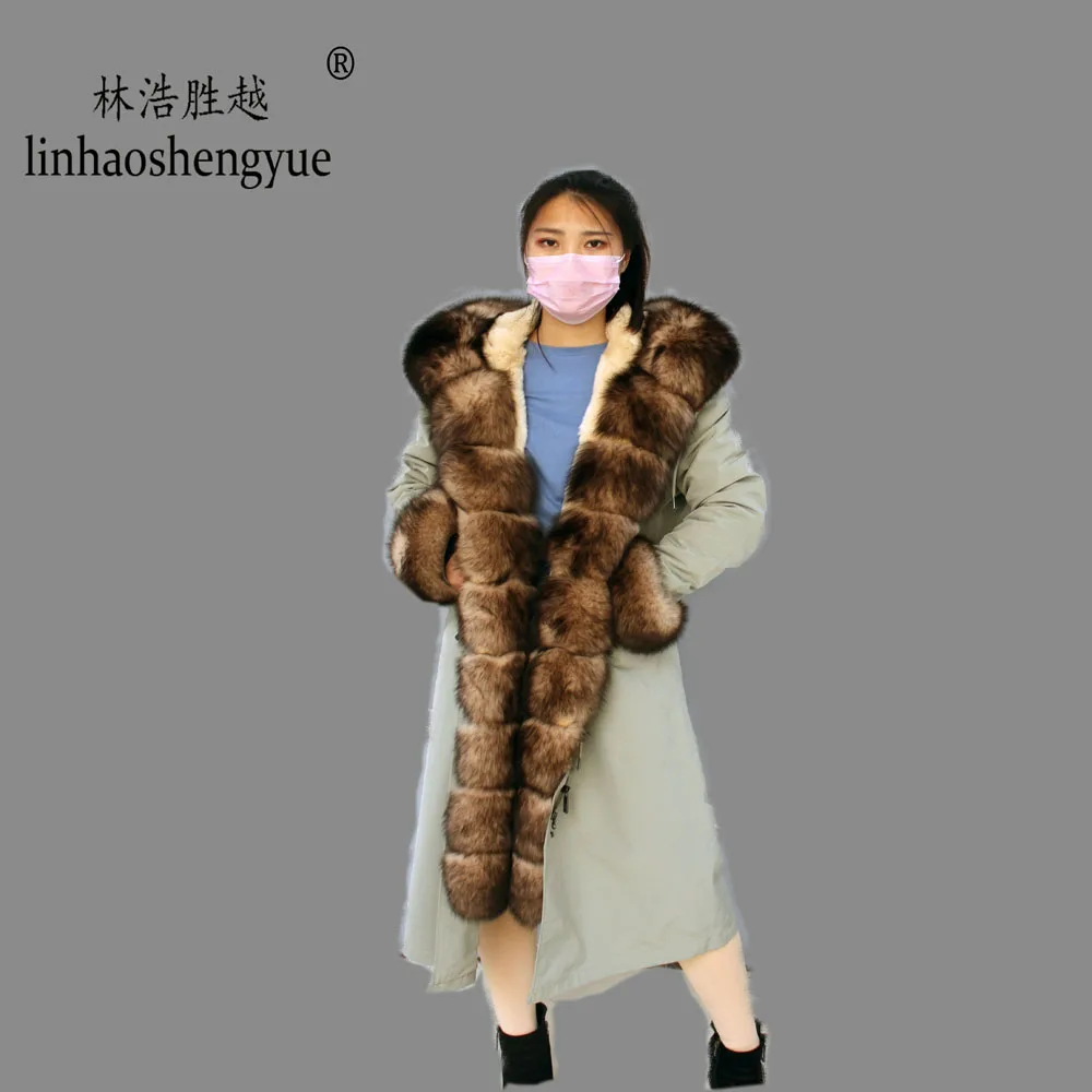 Зимняя женская верхняя одежда Linhaoshengyue, толстые парки, пальто с воротником из натурального Лисьего меха и кроличьей подкладкой