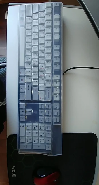 Хорошо принят, полностью соответствующий клавиатуре стандартного размера azerty или querty с цифровой клавиатурой справа, я рекомендую по цене хорошего качества, чтобы защитить его различные защитные клавиатуры!!!