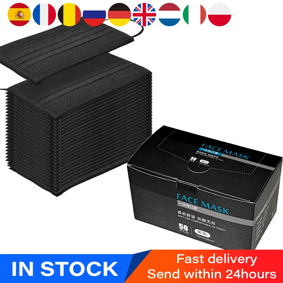 Противовирусная одноразовая маска для лица, черная, противопылевая, 3-слойная, Нетканая, безопасная маска для лица