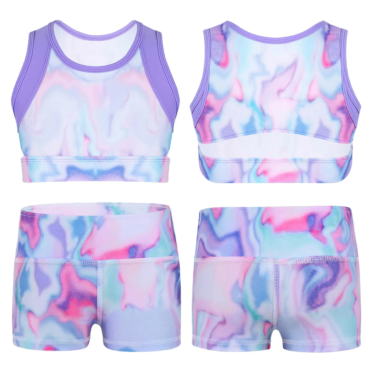 Особенности:Наряд выполнен из материала полиэстер, ручная стирка.Таблица размеров означает возрастные диапазоны для девочек, но они предназначены только для общего руководства.Кроп-топ без рукавов, круглый вырез горловины. Симпатичный дизайн тай-дай. Утягивающая застежка, приталенный крой.Сочетающиеся шорты с завышенной талией. Модель покроя для мальчика. Эластичная ткань, удобная в носке.Идеально подходит для занятий балетом, танцами, выступлений на сцене, тренировок и т. Д.