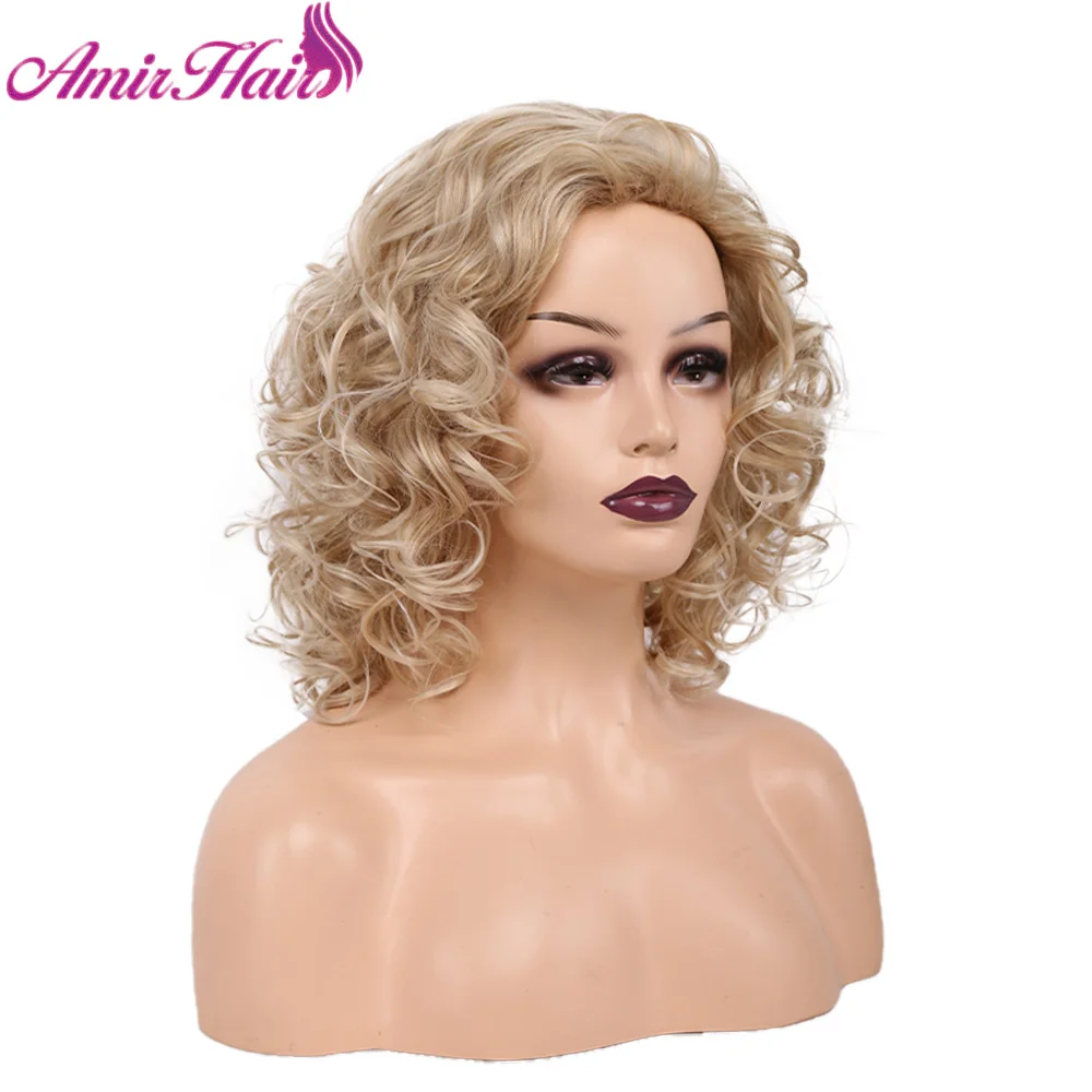 Кудрявый синтетический парик Amir, светлые парики средней длины для афроамериканских женщин, многослойные накладные волосы, парик для косплея на вечеринку