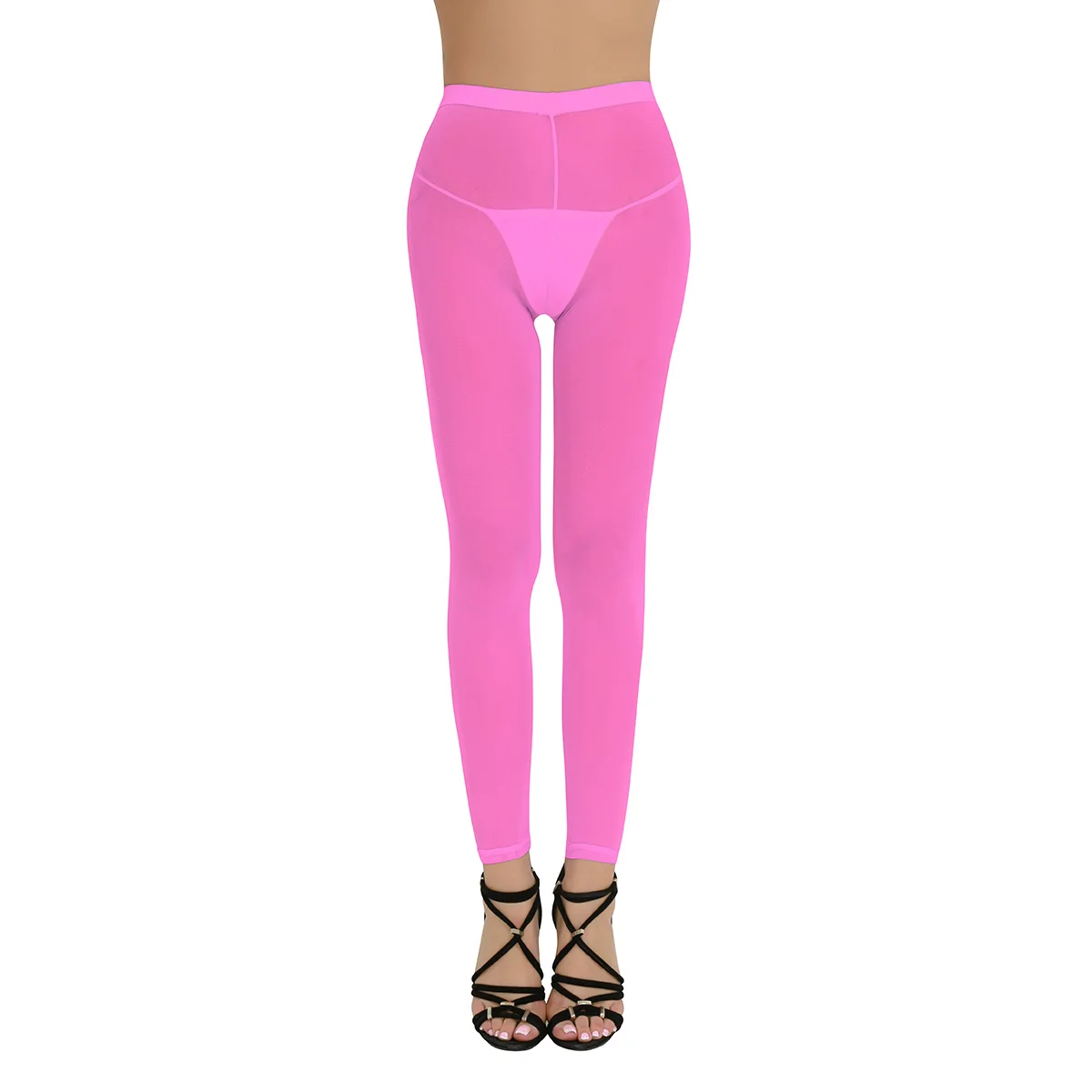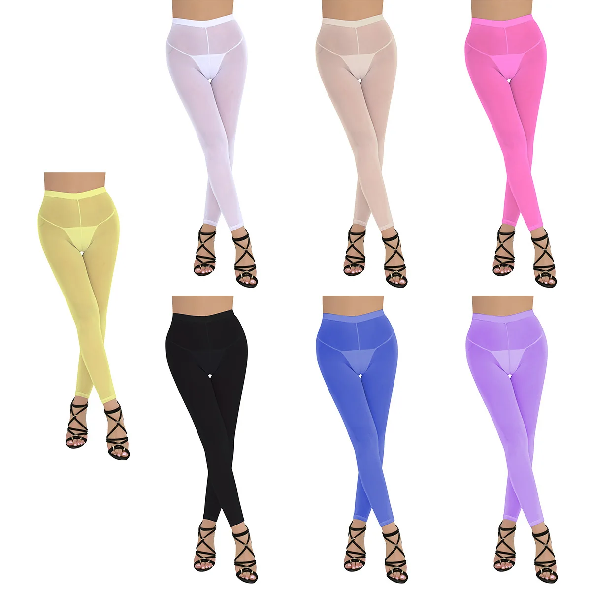 Женские прозрачные сетчатые леггинсы, сексуальные прозрачные штаны для женщин, эротическое белье, Клубная одежда, эластичные Стрейчевые брюки карамельных цветов