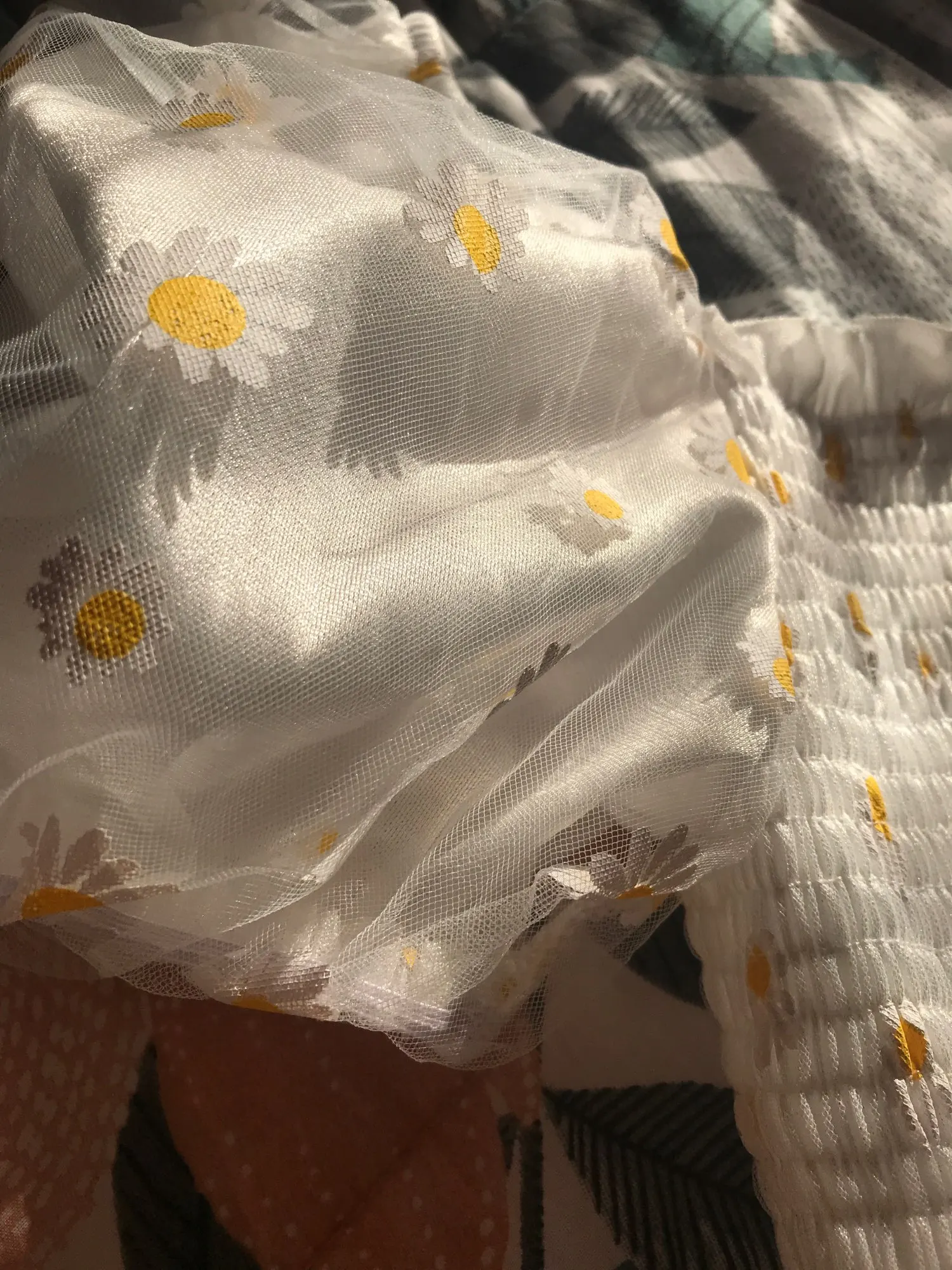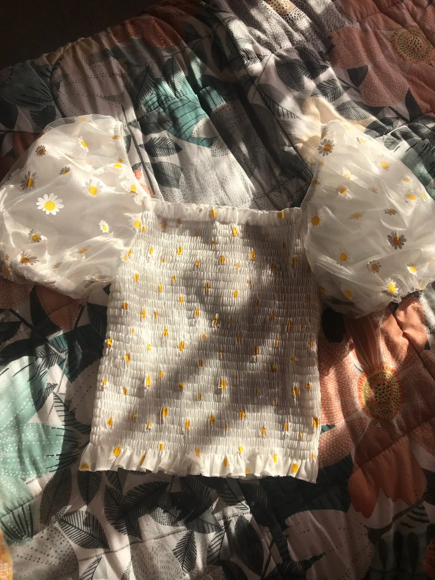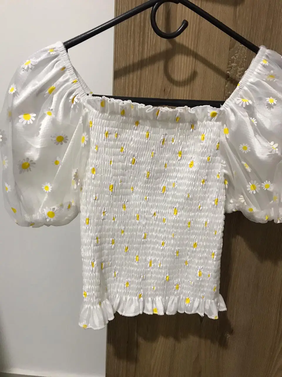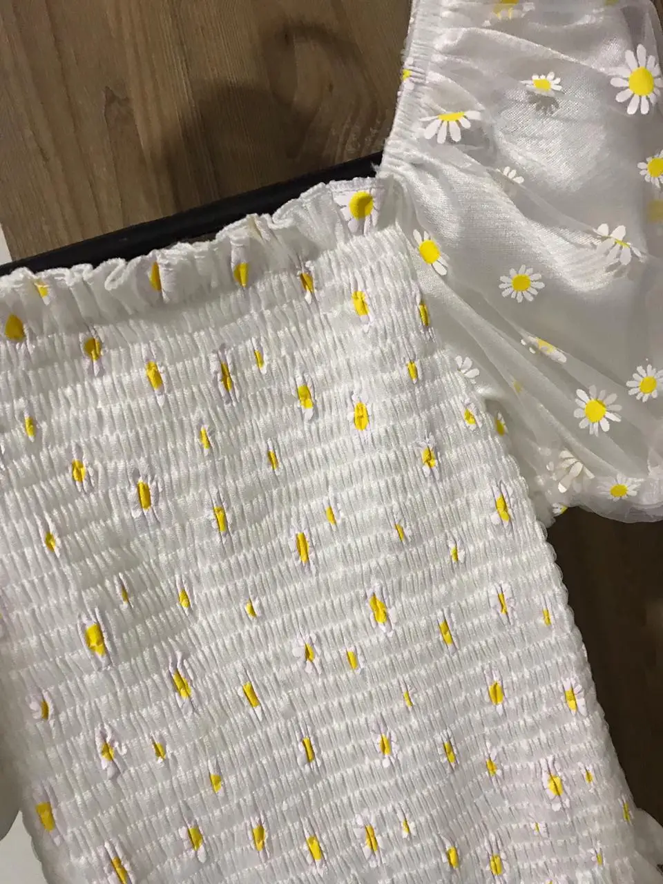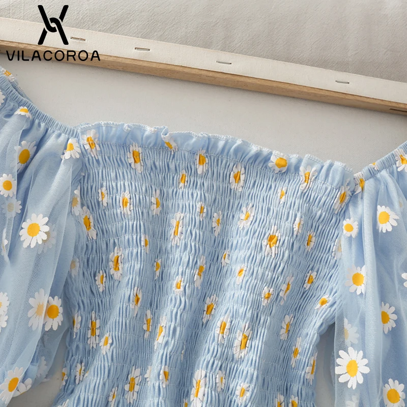 Футболка женская с цветочным принтом, Милая Короткая рубашка с рукавами-фонариками, с вырезом лодочкой, сетчатый топ с маленькими маргаритками, одежда в стиле Харадзюку, на лето
