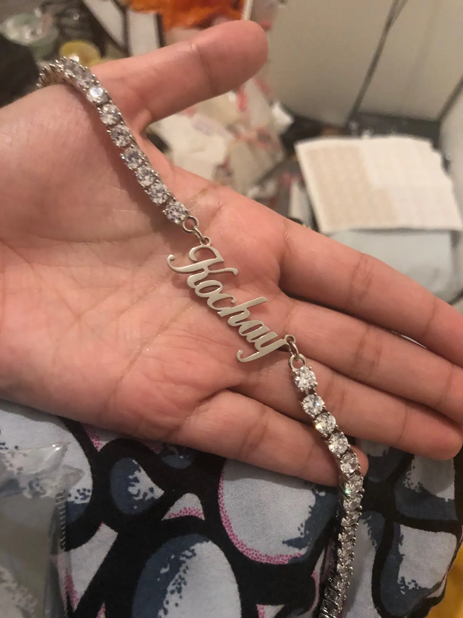 Страна: BE Main Stone Color: 5mm CZ Tennis chain Length: 14inch plus 4inch Metal Color: Silver Letters Доставка: Standard Shipping 25.04.2021