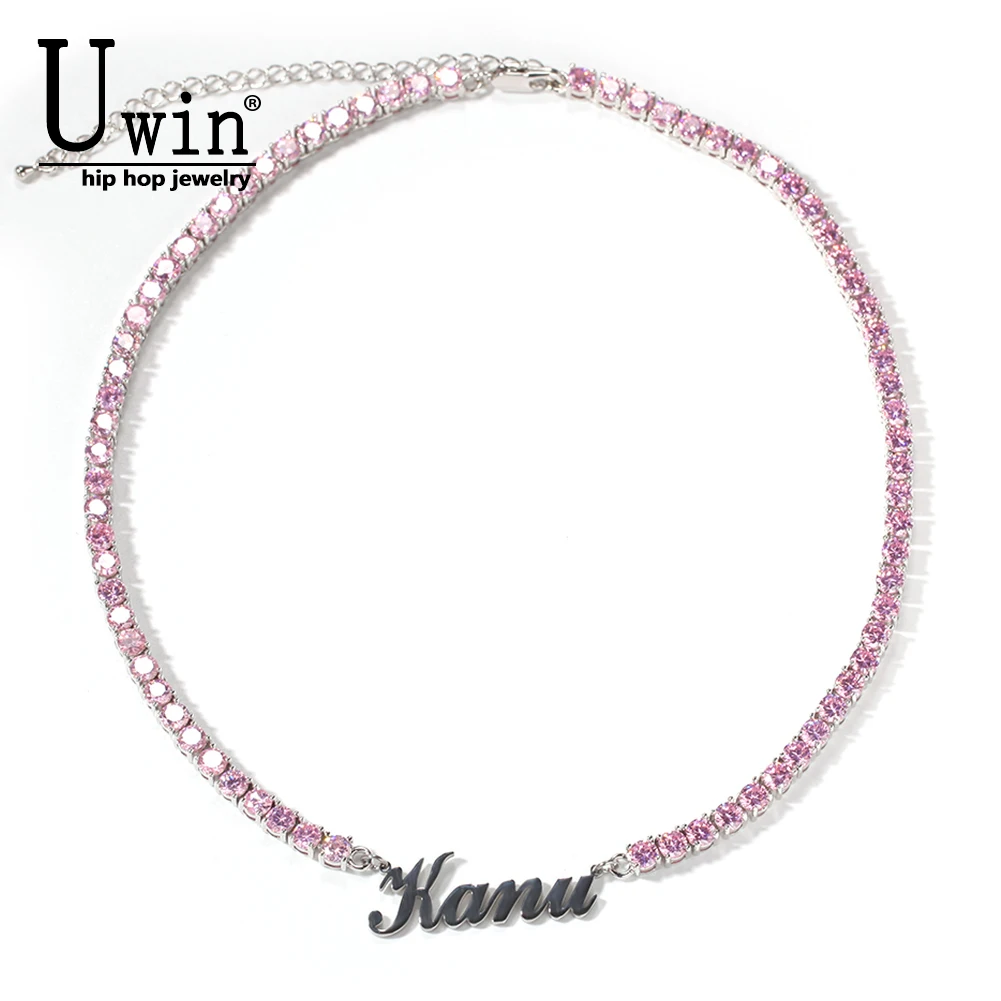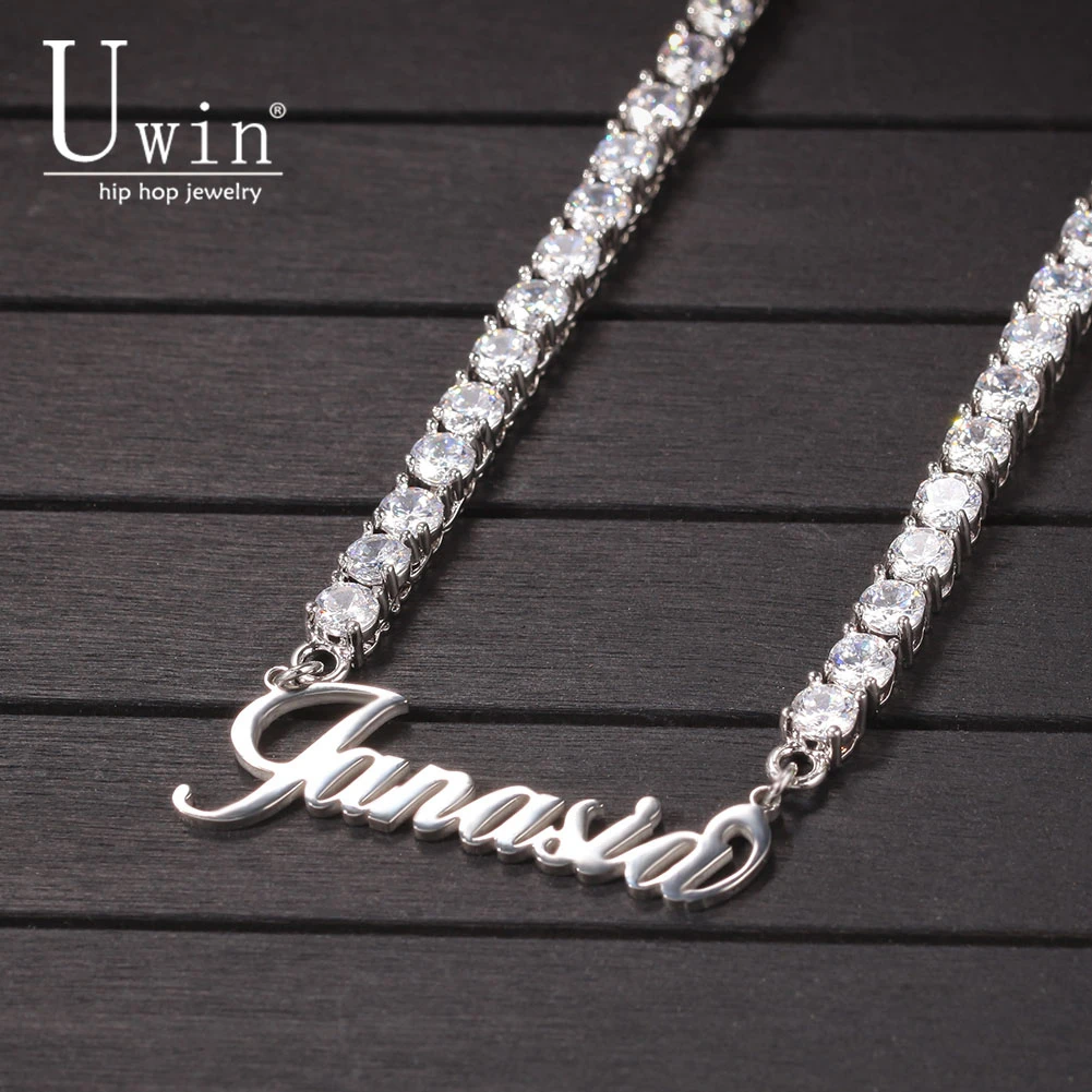 Ожерелье Uwin из нержавеющей стали с именем, буквы на заказ с фианитом 5 мм, теннисная цепь с полным цирконием, подарок сделай сам, ювелирные изделия в стиле хип-хоп