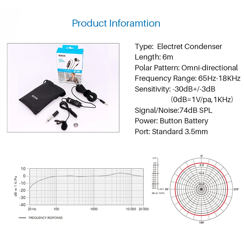 1.BOYA BY-M1-это всенаправленный петличный микрофон, предназначенный для смартфонов, DSLR, видеокамер, аудиомагнитол и т. д., он идеально подходит для использования в видео. 2. С рисунком Omni pickup, для полного покрытия на 360 °, это абсолютно дает вам возможность запечатлеть что-либо на вашем месте. Кроме того, встроенный 6-метровый (20 дюймов) кабель с 3,5 мм 4-х полюсной золотистой вилкой-это всего лишь второе должен быть подключен к вашим смартфонам и большинству камер. 3.100% хороший выбор. Супер звук для презентаций и видеомагнитофонов.
