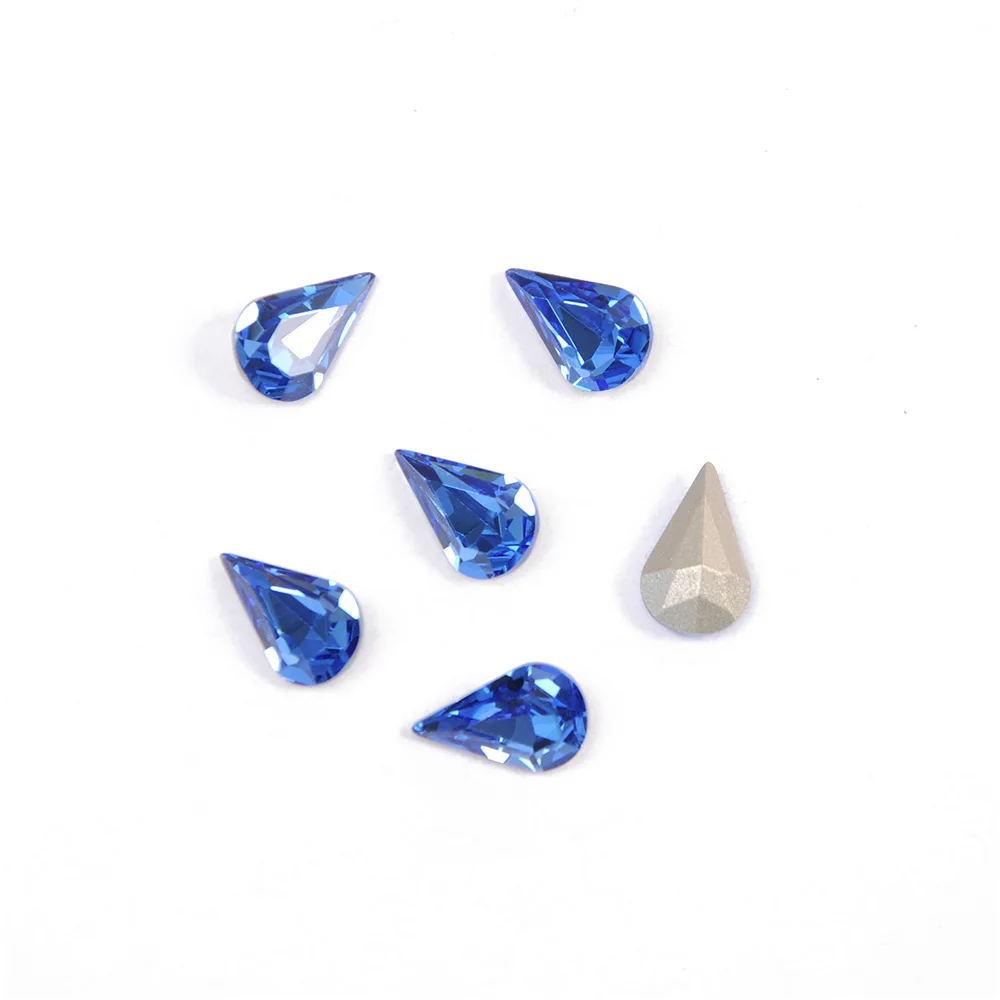 Стиль: 4300 в форме груши Цвет: Сапфир Материал: с украшением в виде кристаллов Используется на: Нейл-арт, одежда, обувь, сумки ..... Размер: 5x8 мм, 6x10 мм, 8x13 мм Вид транспорта: UPS DHL FEDEX TNT Aliexpress Демонстрация продукта: