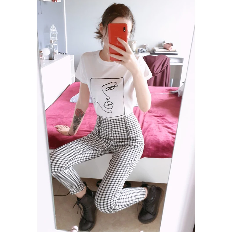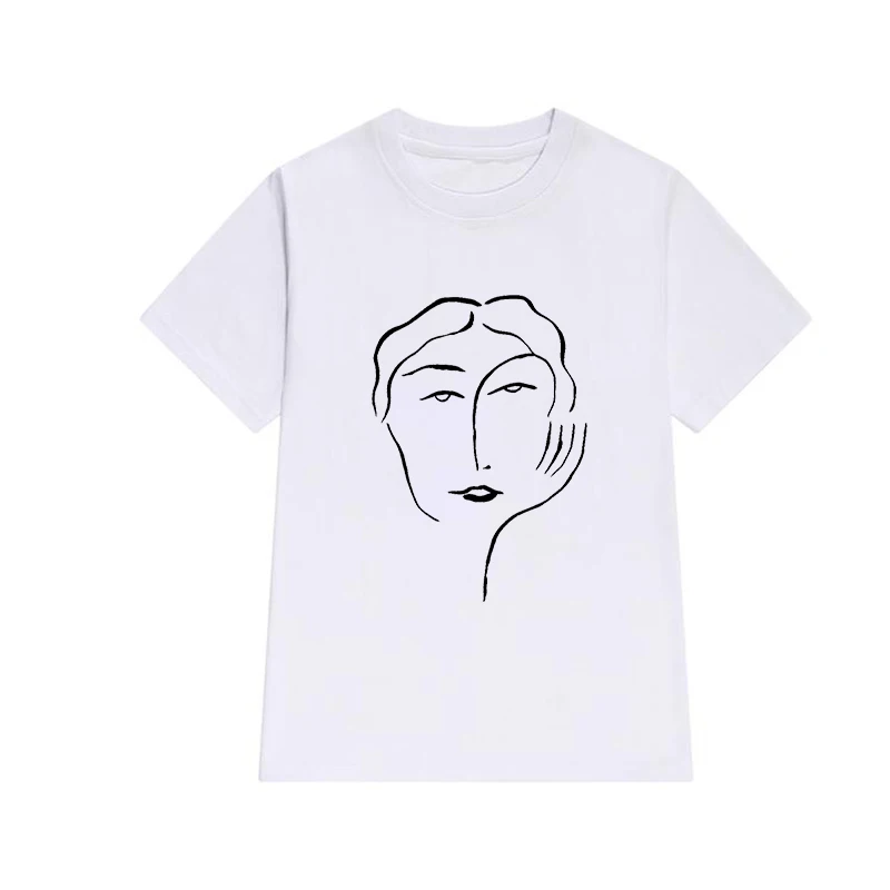 Новинка 2020, Винтажная летняя женская футболка с абстрактным изображением лица, тонкая футболка в Корейском стиле с короткими рукавами и круглым вырезом, топы