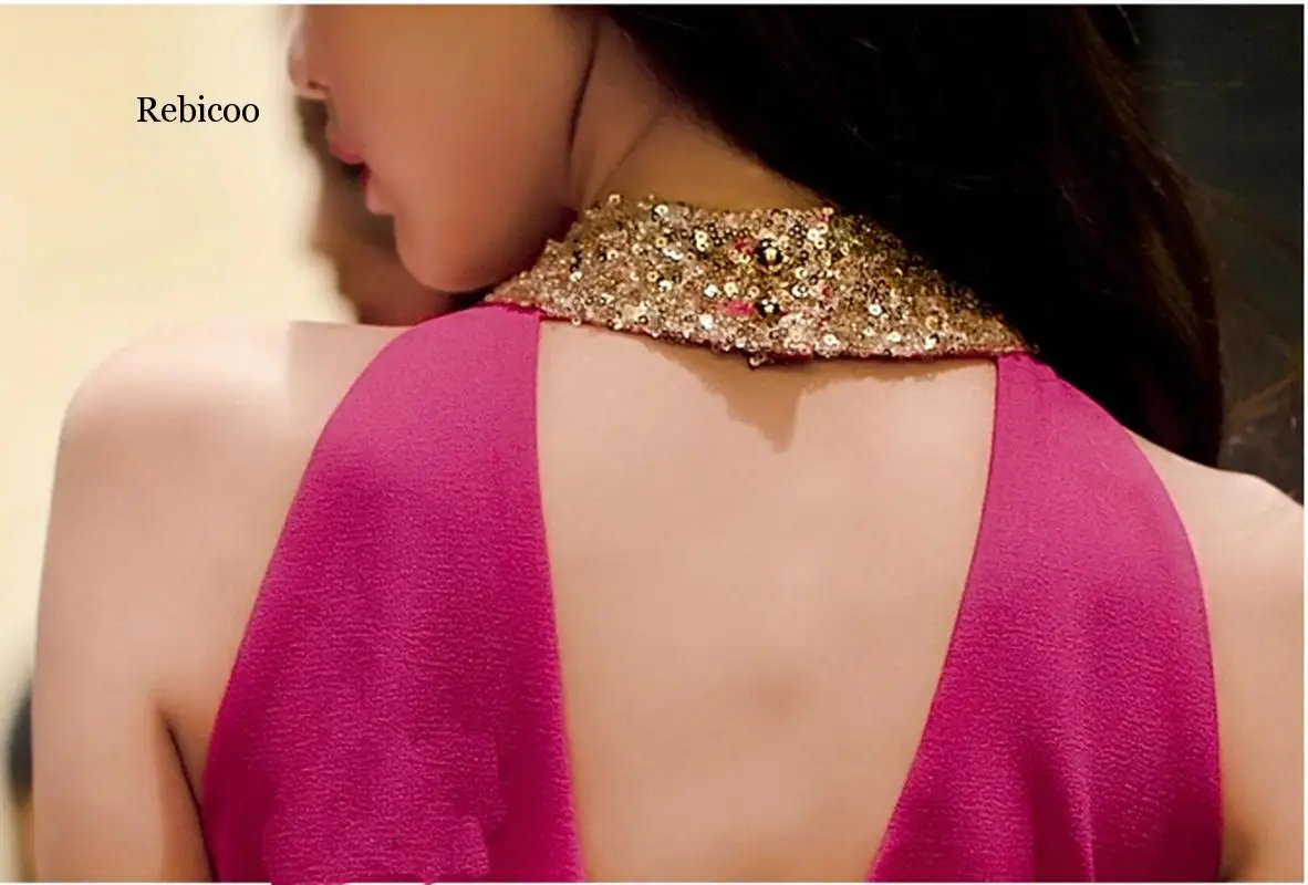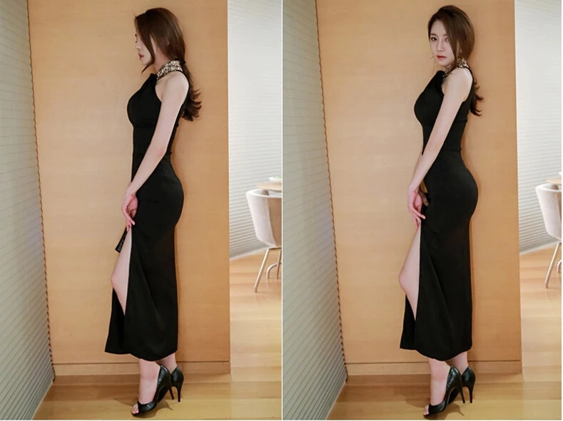 Новое Сексуальное Женское облегающее платье, темпераментное платье для ночного клуба, длинное банкетное платье без рукавов с висячим воротником